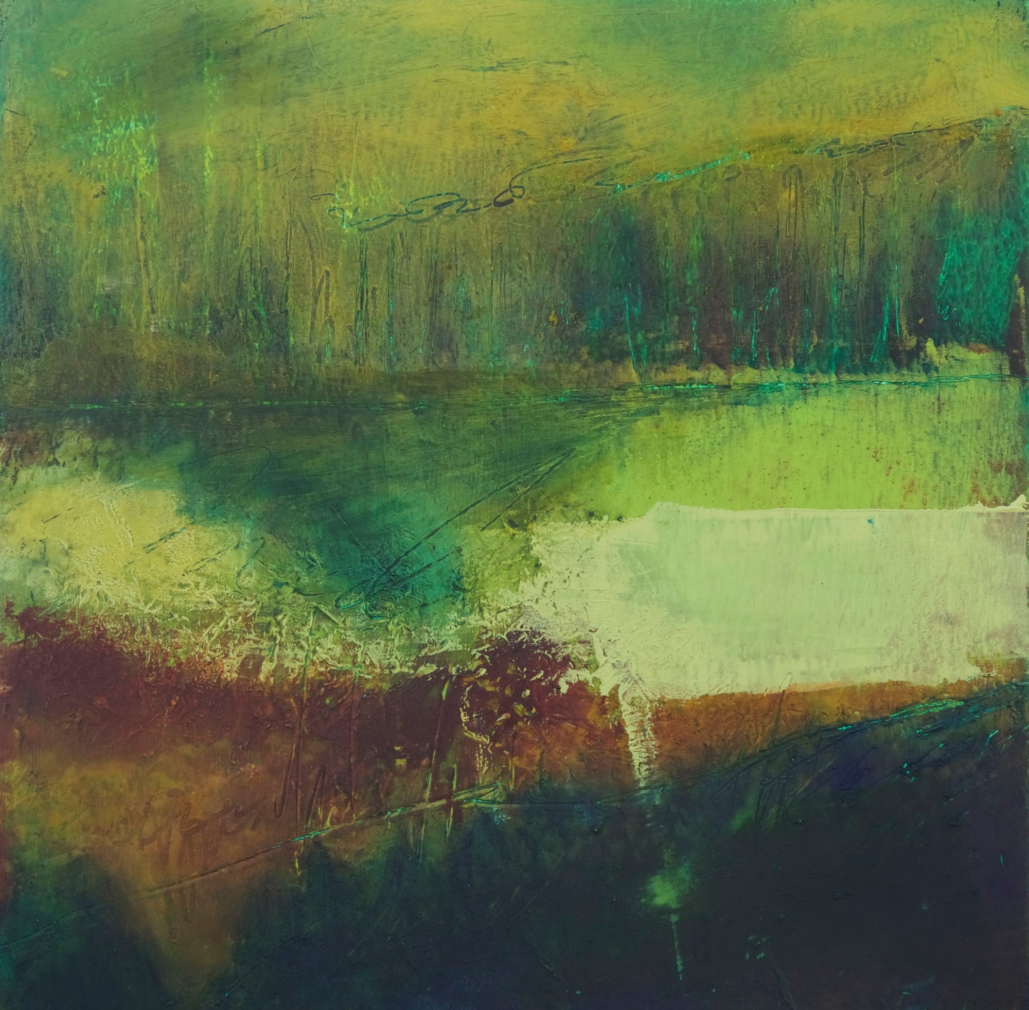 Oil, cold wax, and pastel on cradled panel and is in the series “If a Tree Falls”.