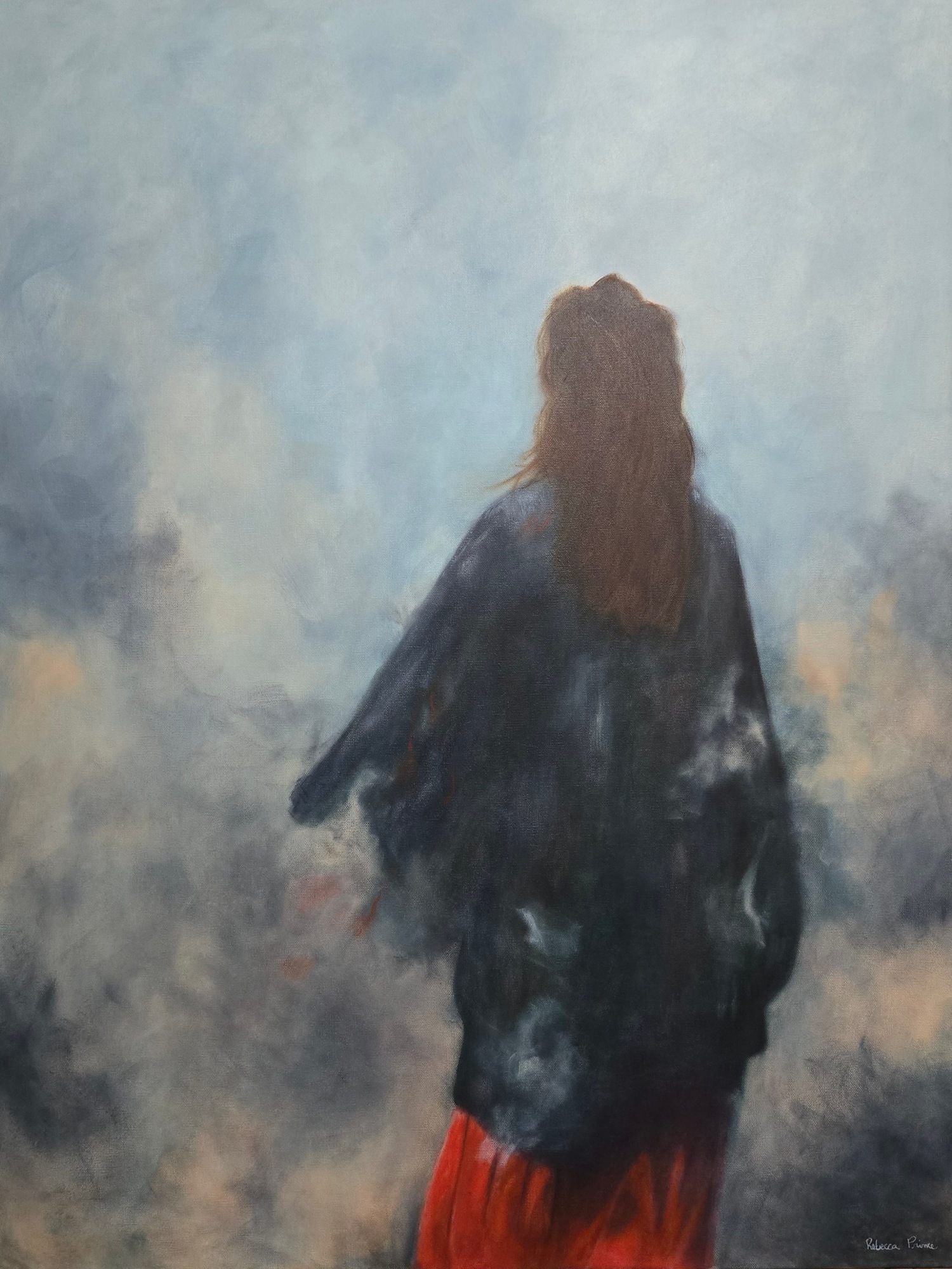 A woman stands in quiet anticipation, caught between what was and what will be. The red skirt hints at a powerful vitality beneath the surface, even in seasons when she feels muted or uncertain. Expectant honors that in-between space, where healing begins, voices are reclaimed, and the unseen becomes sacred ground. It’s a reminder that even in the stillness, your voice matters. You are not invisible. You are unfolding.