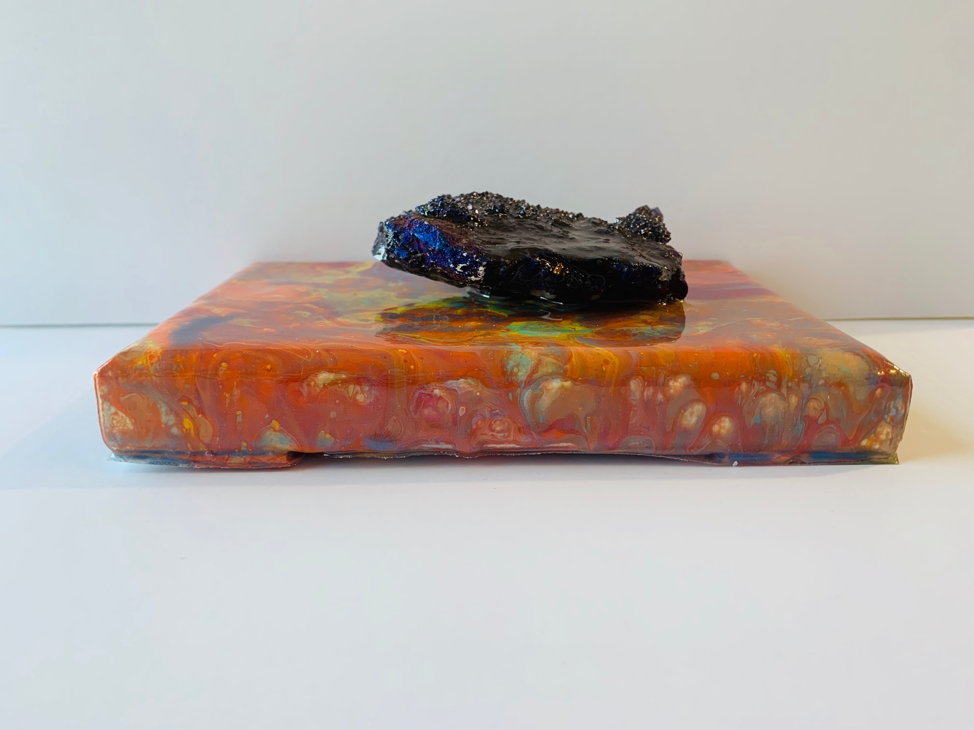 ‘Rock Me’ 4x6.5 Acrylic pour on Canvas Beautiful Crystalized Rock Finished with Archival Resin