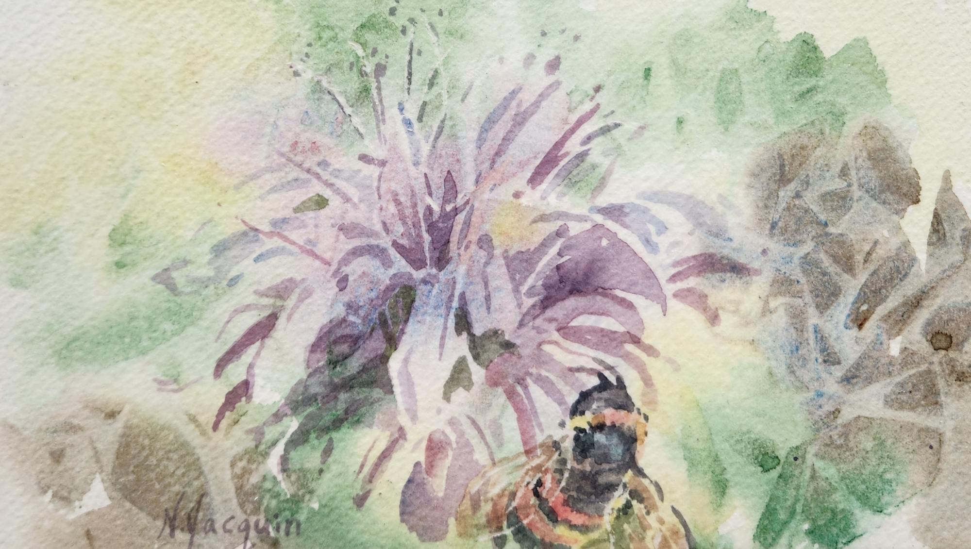 4.25" x 8" watercolour image mounted on 9" x 12" white and birch cradleboard.