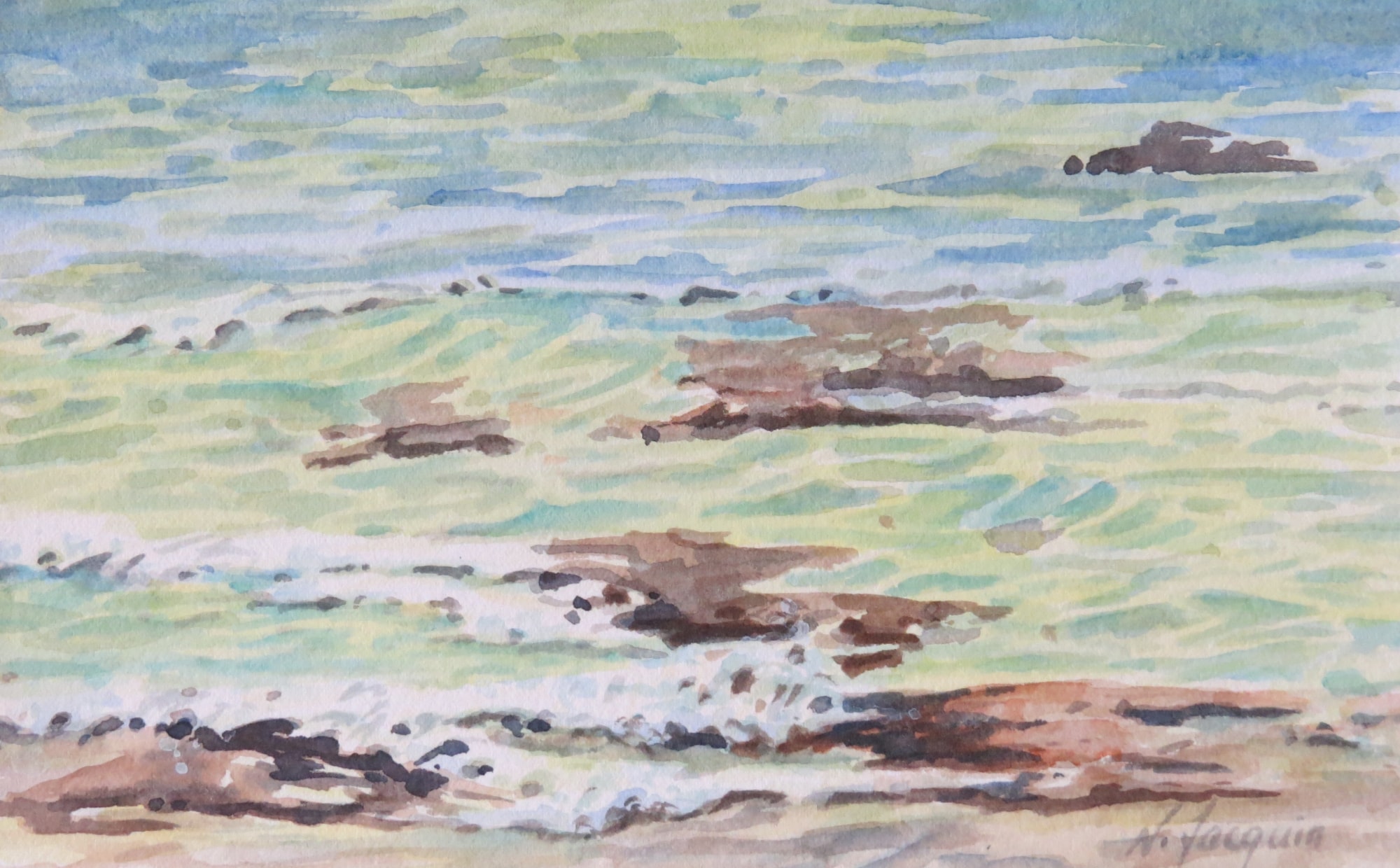 Mezmerizing - Copyright Nikki Jacquin. Watercolour En Plain Air. Image: 8.25in x 5in - $200. + taxes, shipping and insurance framed. Please call 1-877-335-7655 toll free for delivery in North America. Art is framed with an N-15 profile metal frame and 3" acid free off white acid-free mat.