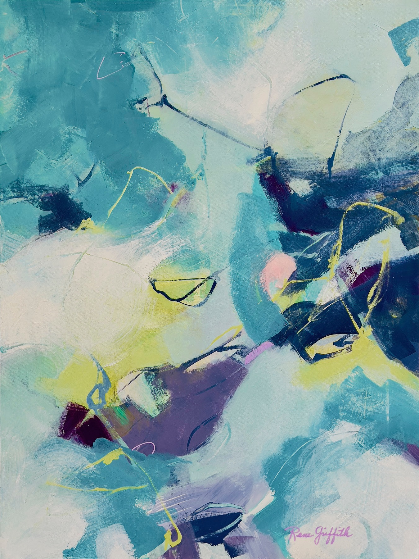 Blueberry Burst is a 40 by 30-inch acrylic painting that continues my journey through the depth of blues in abstract form as part of my Blue Series.Through this piece, I hope to share a feeling of peaceful energy—how color and form can come together to uplift and inspire, even in quiet moments. Blueberry Burst embodies a serene yet vibrant harmony, inviting viewers to experience a peaceful flow of color and light.