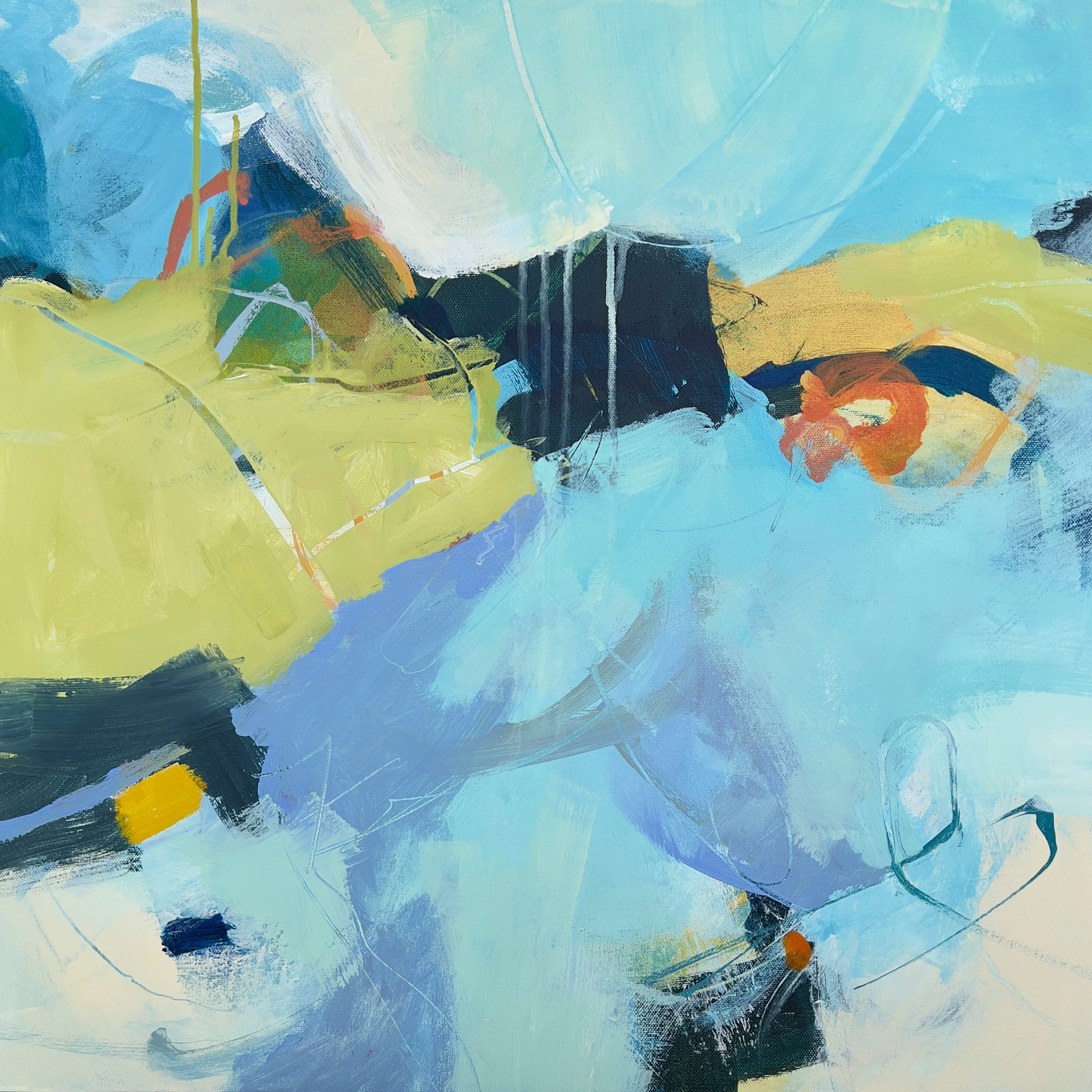 My three abstract paintings, So the Story Begins, So the Story Goes, and So the Story Ends, explores the delicate tension between control and surrender in abstract painting. The cool light blues create a calm foundation, while warm mustard and ochre brushstrokes add movement and energy. Deep blues and teals introduce contrast, weaving through fluid curves that suggest a quiet flow. This work grew from a process of intuitive gestures—trusting the paint to lead me—highlighting the ongoing balance between conscious intention and unexpected discovery that drives my practice. It’s a visual conversation that continues to inspire and challenge me.