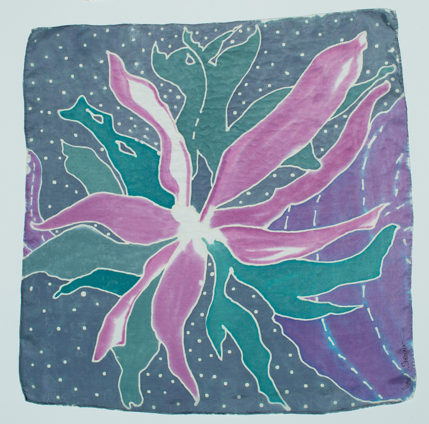I felt a little daring when I created this painting. The expressive flower of the coffee plant is painted rose and green, and the leaves are purple. This is normal in my artwork. But what was really daring was creating a patterned background - so unlike me! But I really liked the way this painting turned out.
