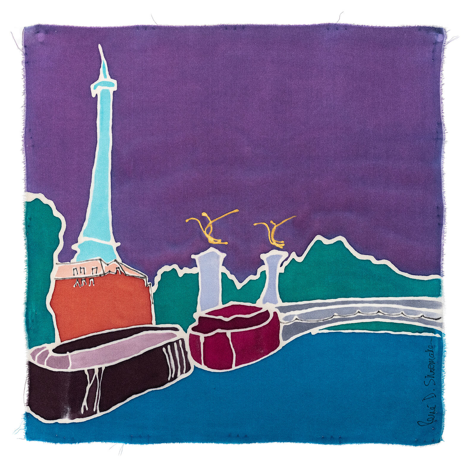 • Hand-painted silk with fiber-reactive dyes and gold resist and pen