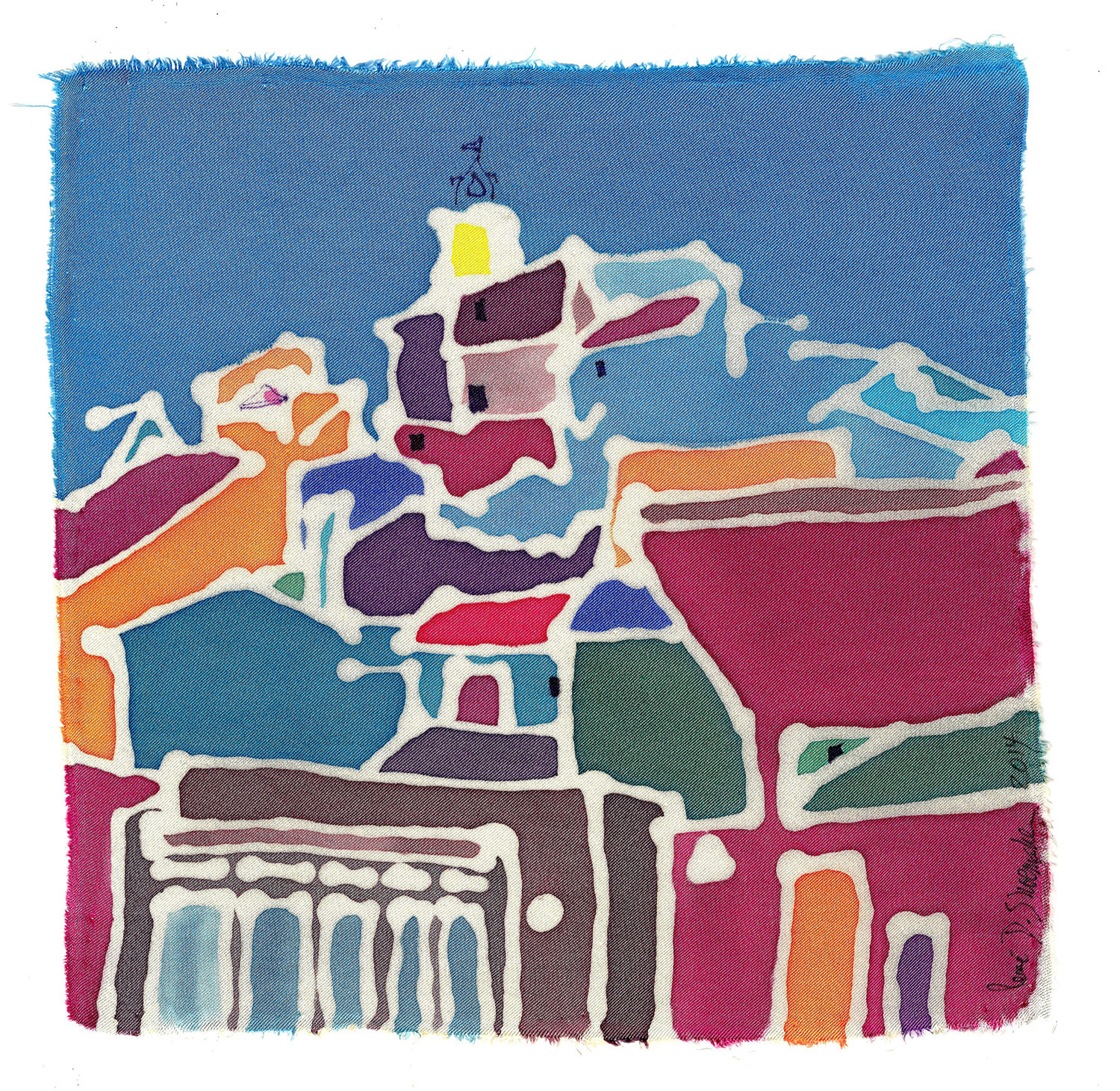 Roujan is in the Languedoc-Roussillon region of southern France, near the Mediterranean Sea. It is located near Bezier and not far from Montpellier. This view, from the bottom of the hill while standing between the soccer field and the wine cooperative shows the school in the forefront. At the top of the hill is the town bell tower made of wrought iron.