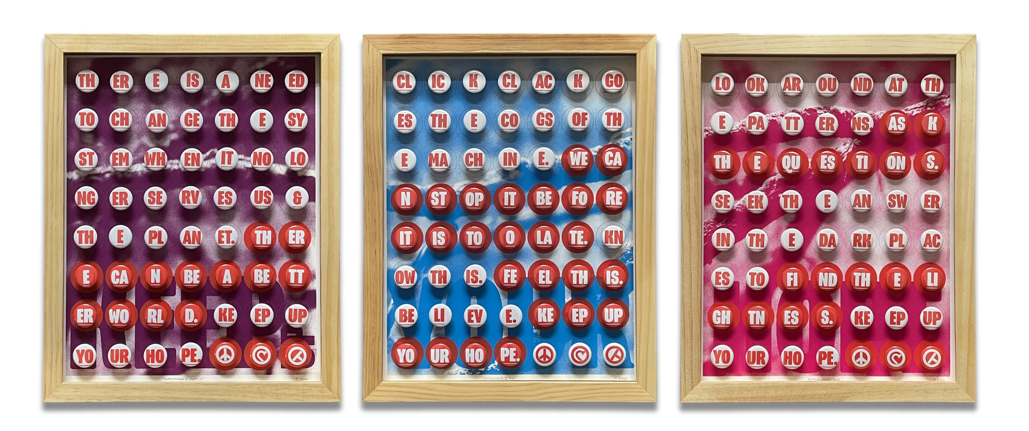 Screen Print on Paper, Wood, Acetate, Metal. Overall dimension is 15.25 inches x 40 inches x 1.75 inches. Each piece is 15.25 inches x 12.25 inches x 1.75 inches. Sold as triptych.