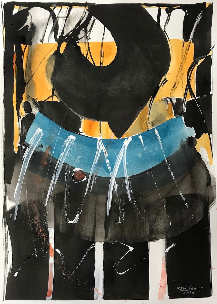 Ink, water color, acrylic on paper