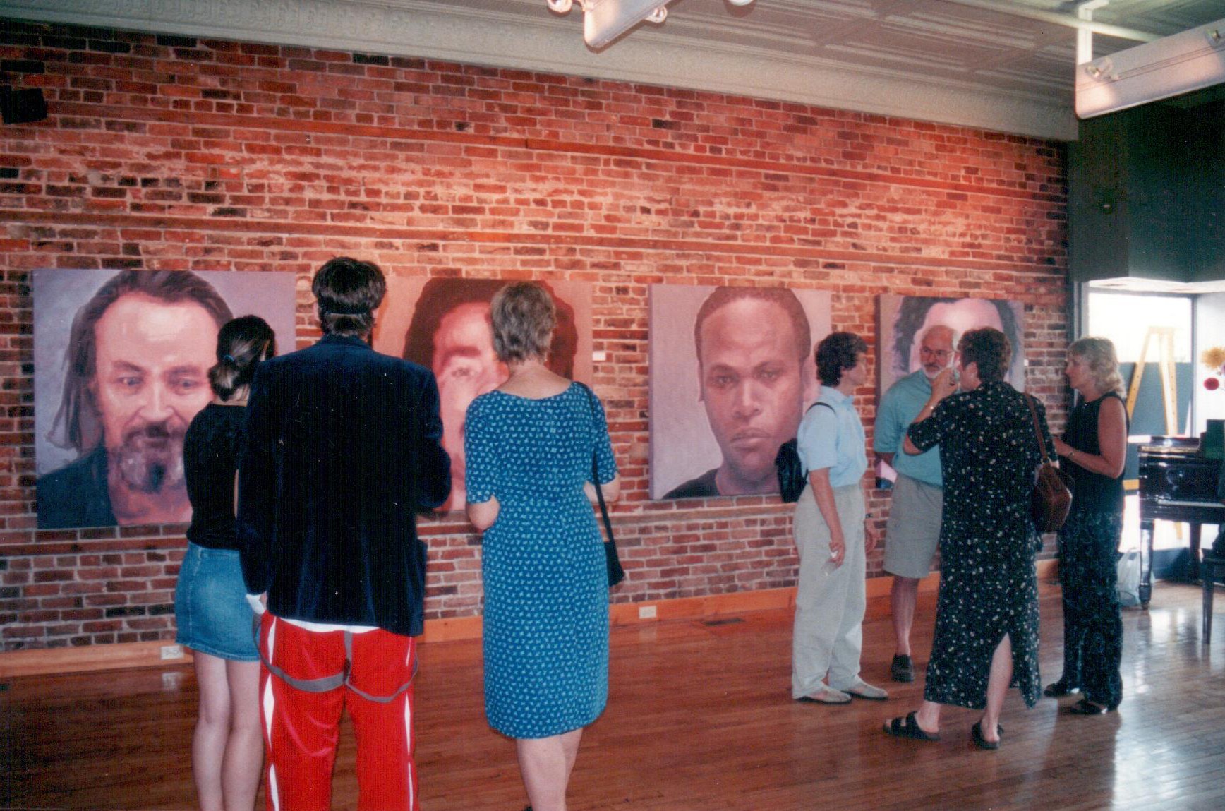From series of paintings, titled, "Fugitives." The faces are from criminal mug shots, the names are fictitious.