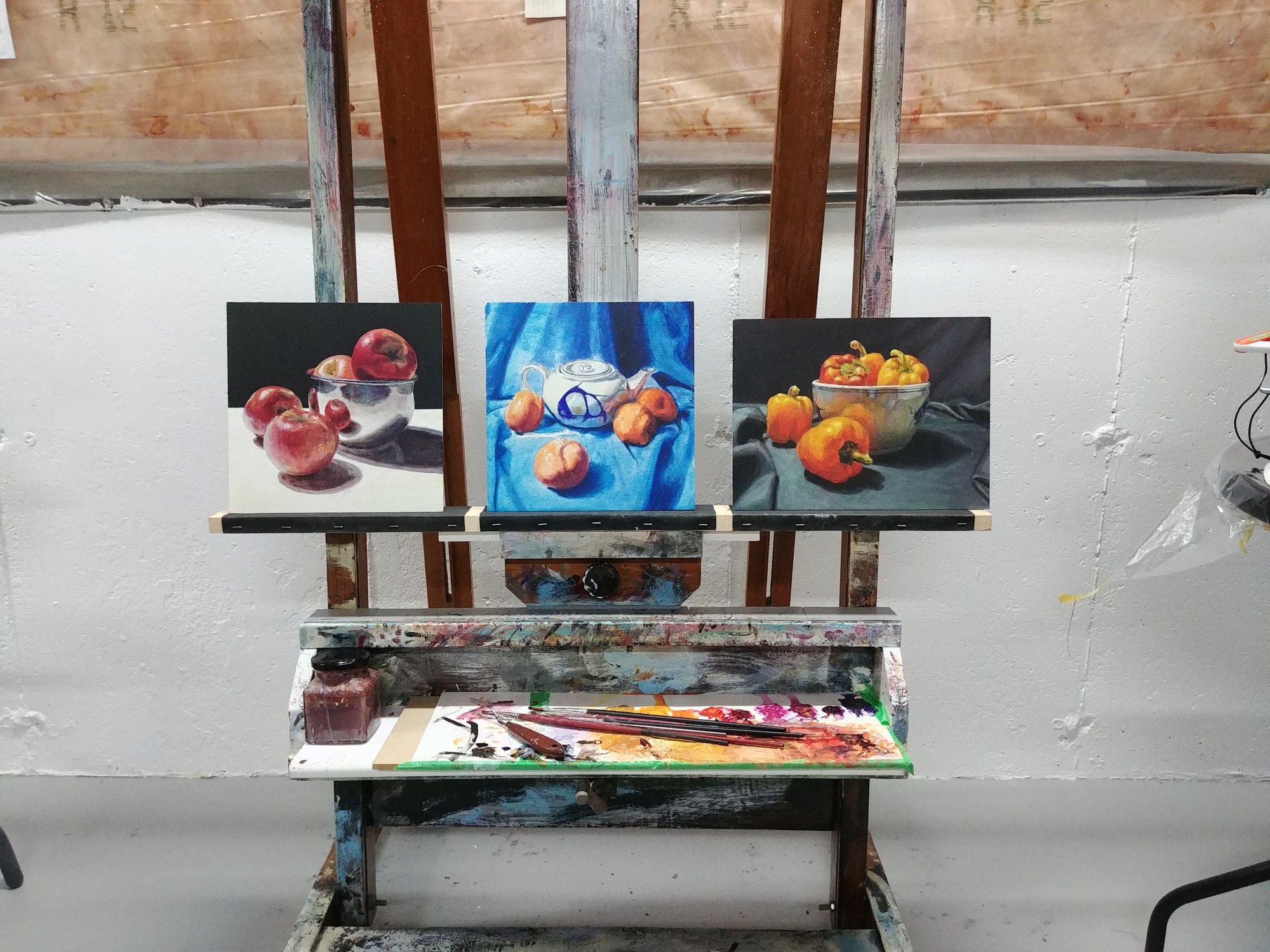 Painting in progress showing roughed-in color, shadows, and highlights. Composed by the artist and photographed to produce references for the painting. There's something compelling about an unfinished piece that makes the artist wonder whether or not it should be taken further.