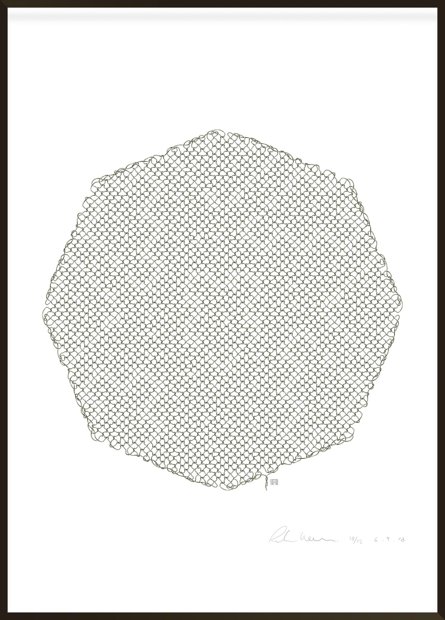 Net VI gives the impression of a series of overlapping rectangles, a little like a Mondrian composition. At the same time, chevron, zigzag and arrow motifs appear at different scales when looked at from a distance.