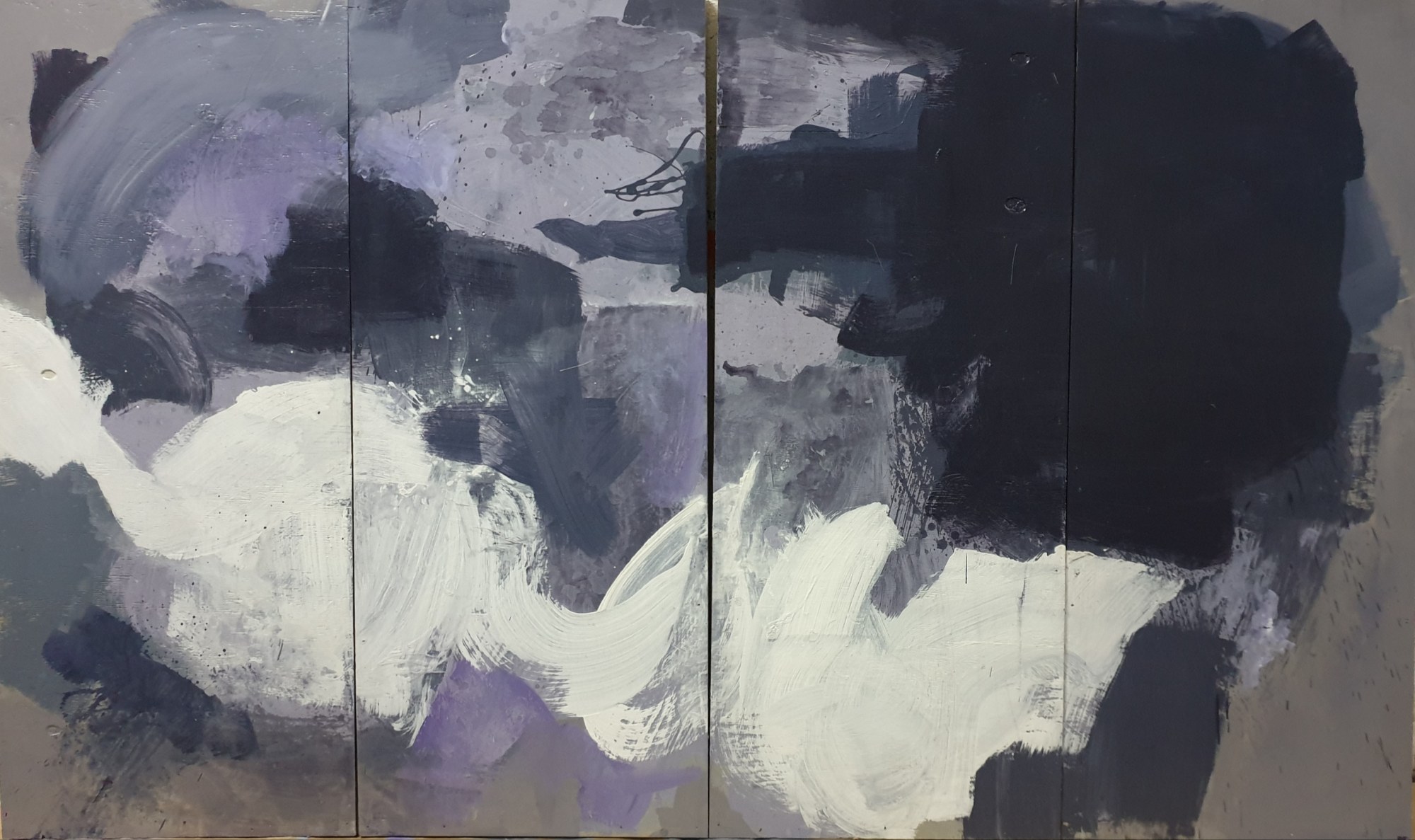 Inspired by a cloudy day and the greek tragedy of the same name. This four panelled work is executed on plywood panels.
