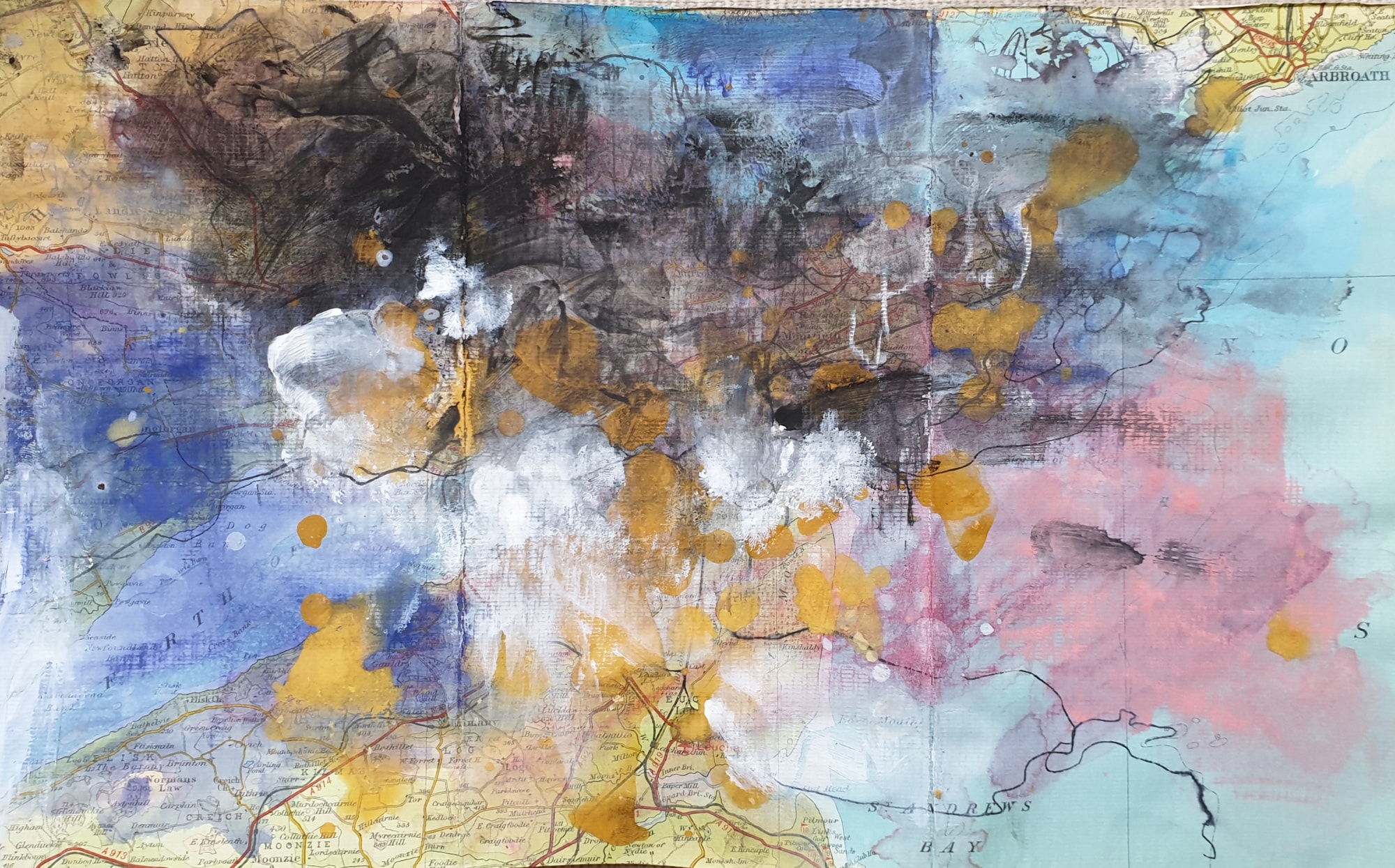 Part of a series of small pieces, that explore the idea of maps and shapes using 1950's ordinance survey maps, developed during a visit to the UK.