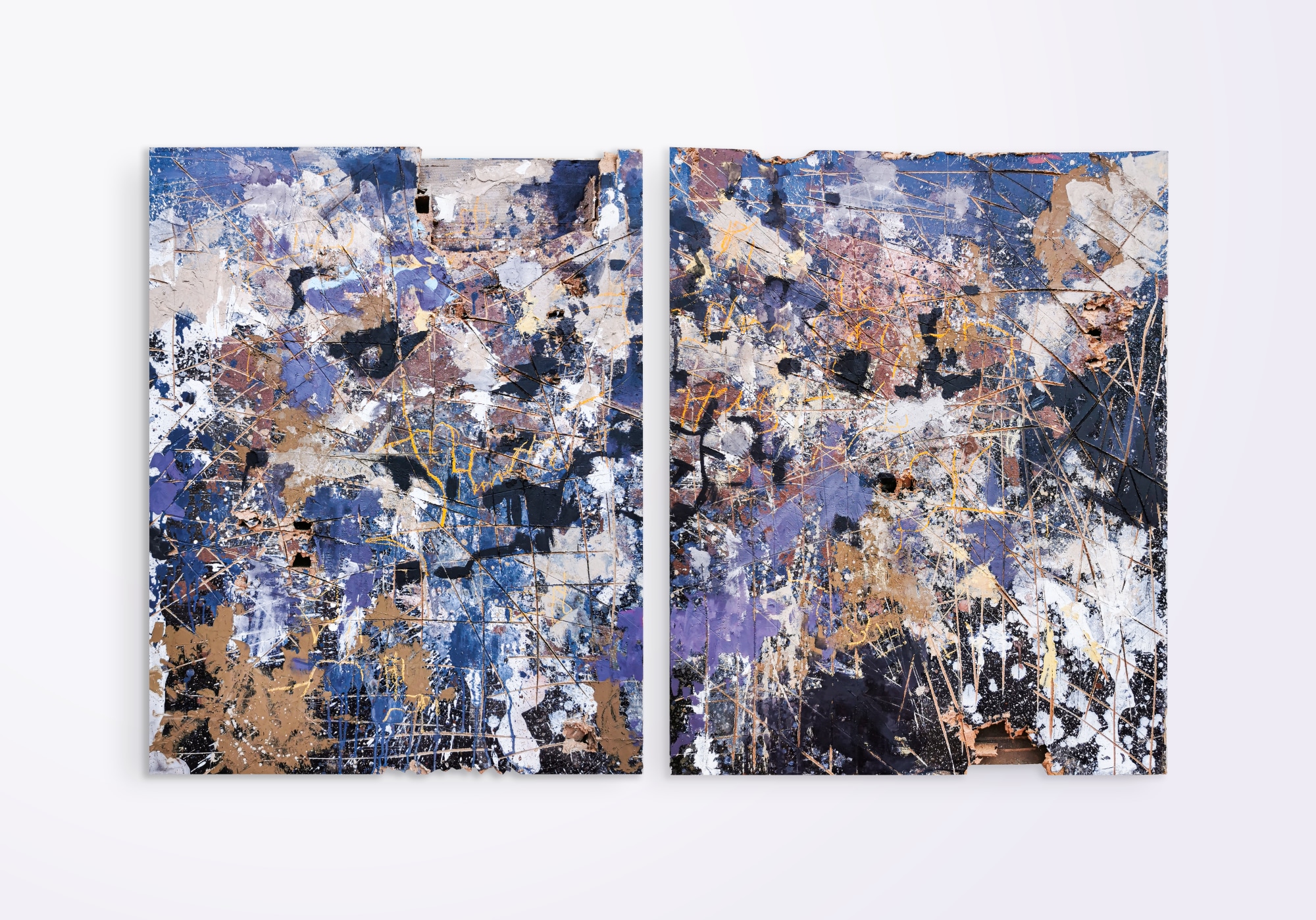In Land Borders I explore a theme that arises from my life experience (as a development economist) and as someone who spends a lot of time flying over African countries. The works are all made from salvaged doors cut in half to form a diptych. In homes, doors act a bit like border posts between rooms - but unlike the borders between countries they are normally easy to open and pass through. This is seldom the case with Africa’s borders - which are chaotic choke points between countries, where trucks can wait for several days before crossing, and bribes are often the only way to pass. All of this massively inflates the cost of goods that people consume and often makes it impossibly expensive for companies to export. The works capture the chaos of such borders - and variously combine the marks made by truck tyres in the muddy parking lots, and aerial imagery of the truck parks and border stations.