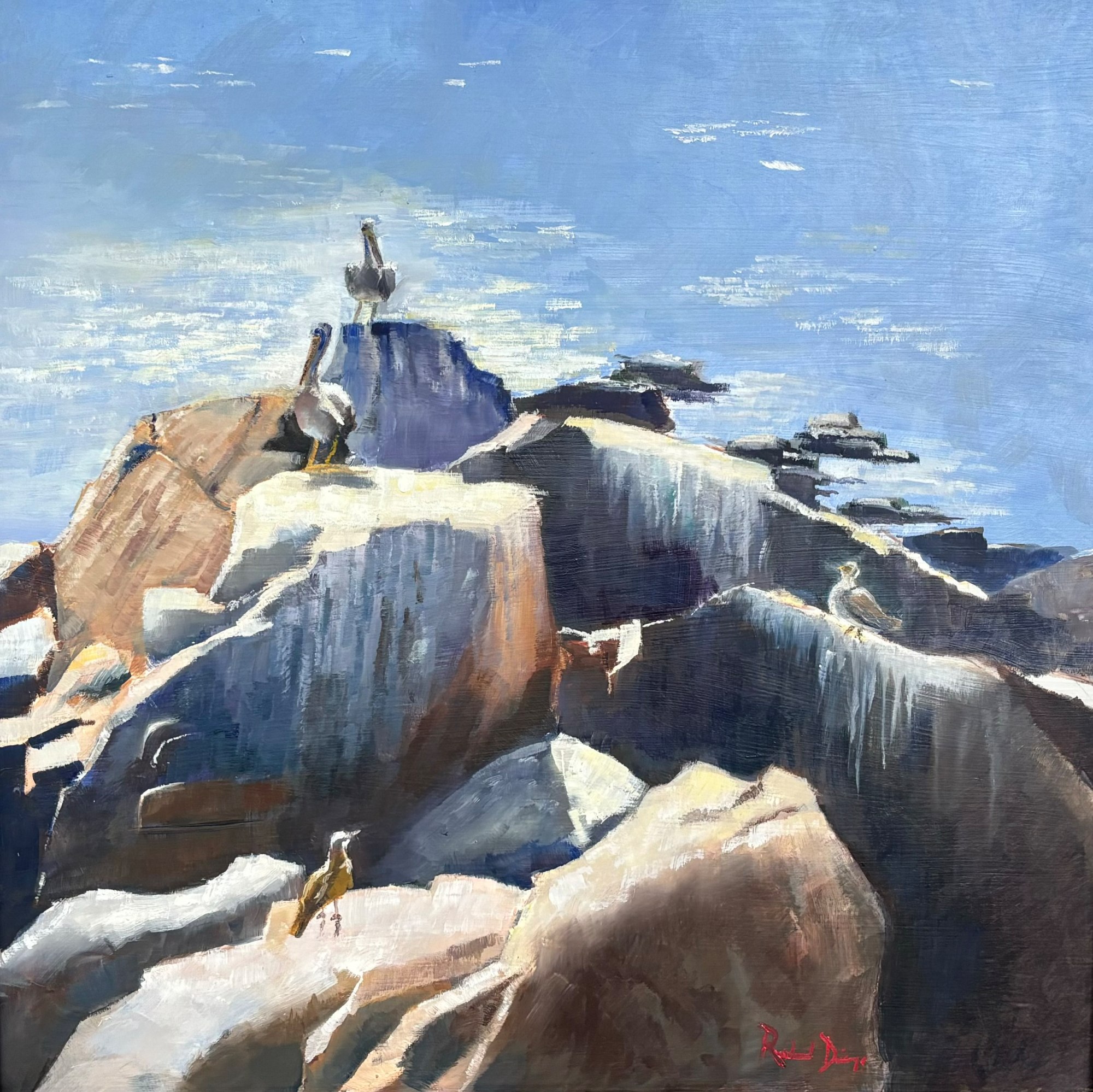 Pelicans, overlooking the Pacific Ocean, Zapallar, Chile