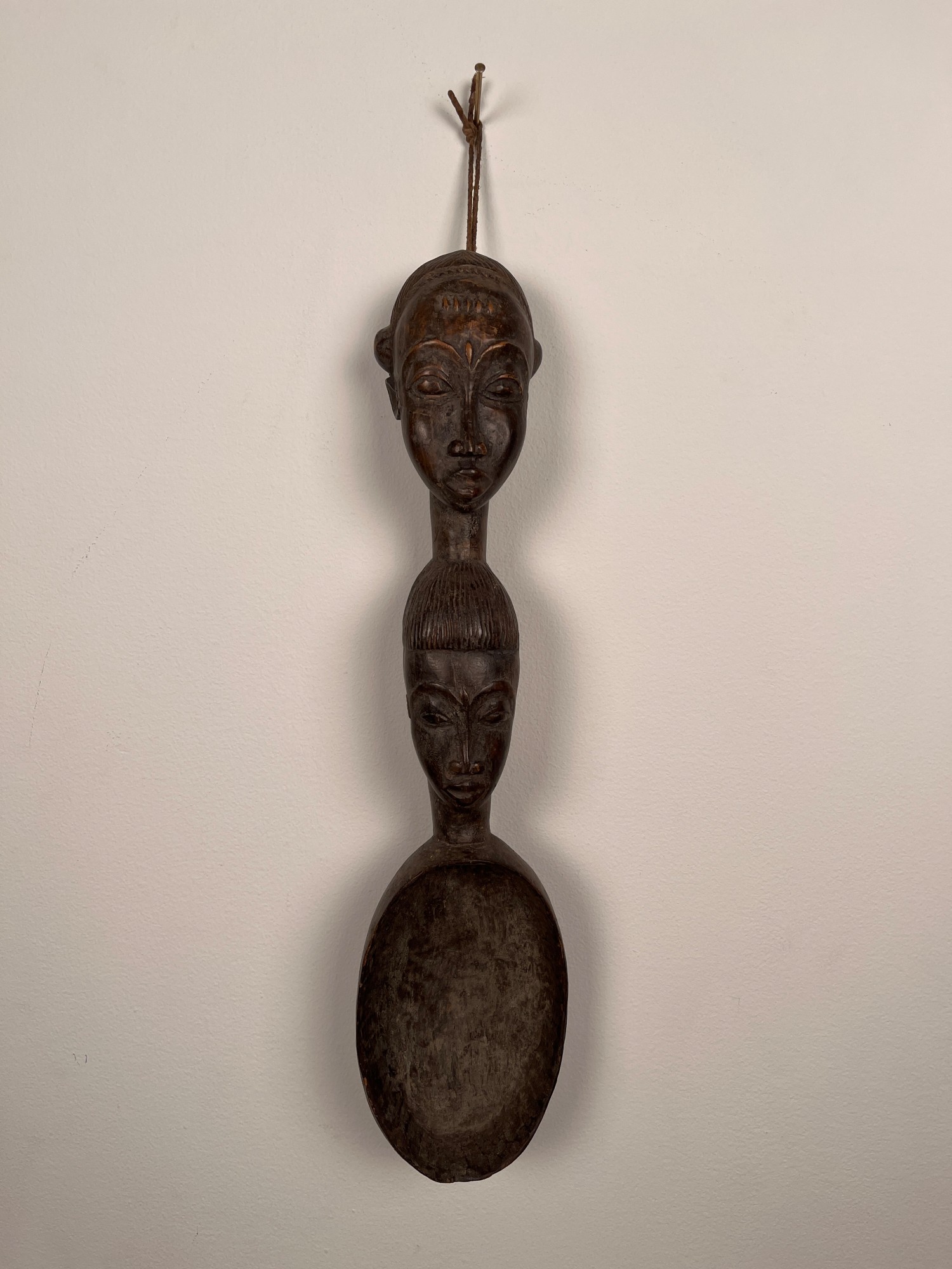 This spoon has a janus head above the ladle with a further head at the top. The faces possibly represent ancestors. It was undoubtedly used for ceremonial purposes.