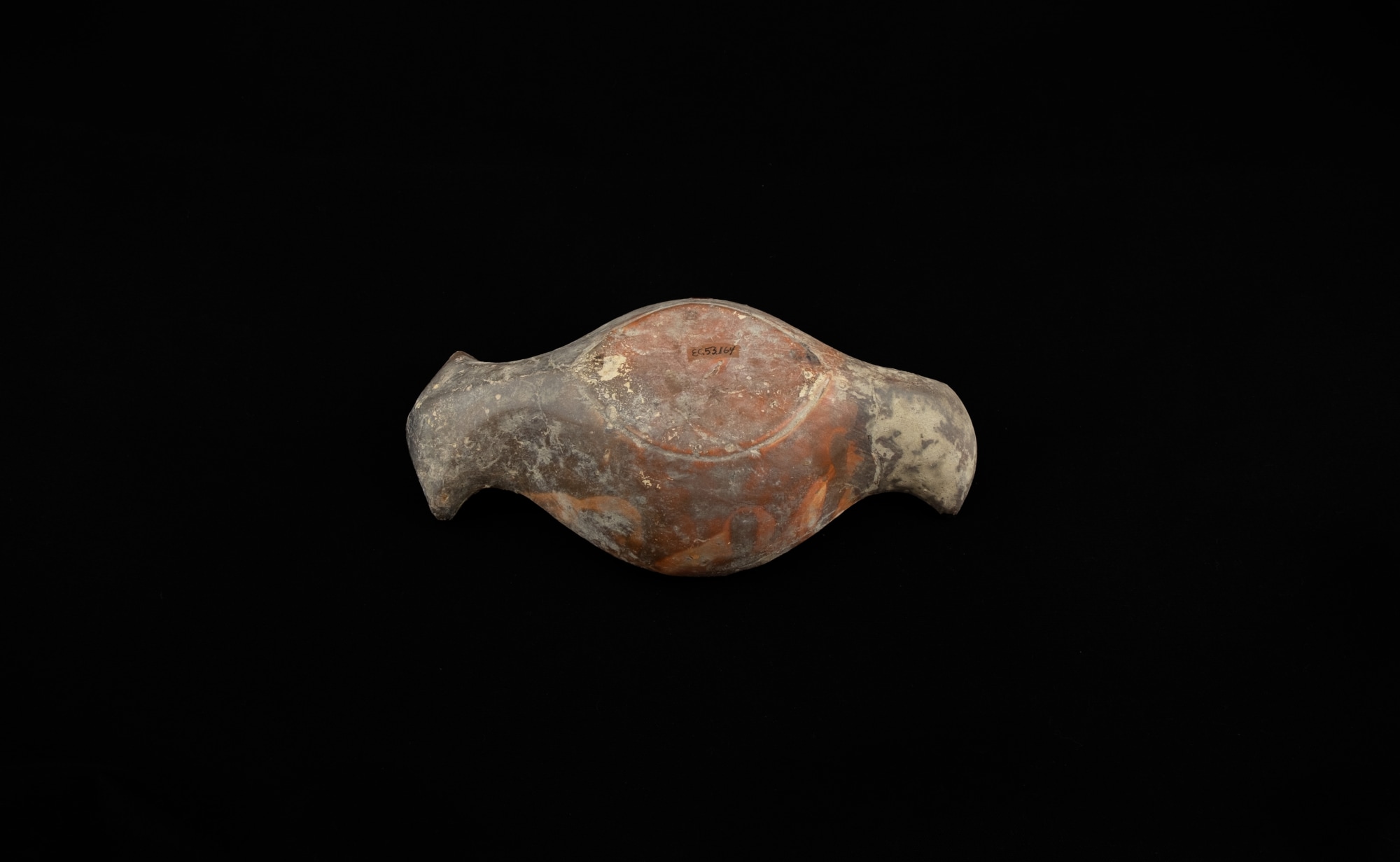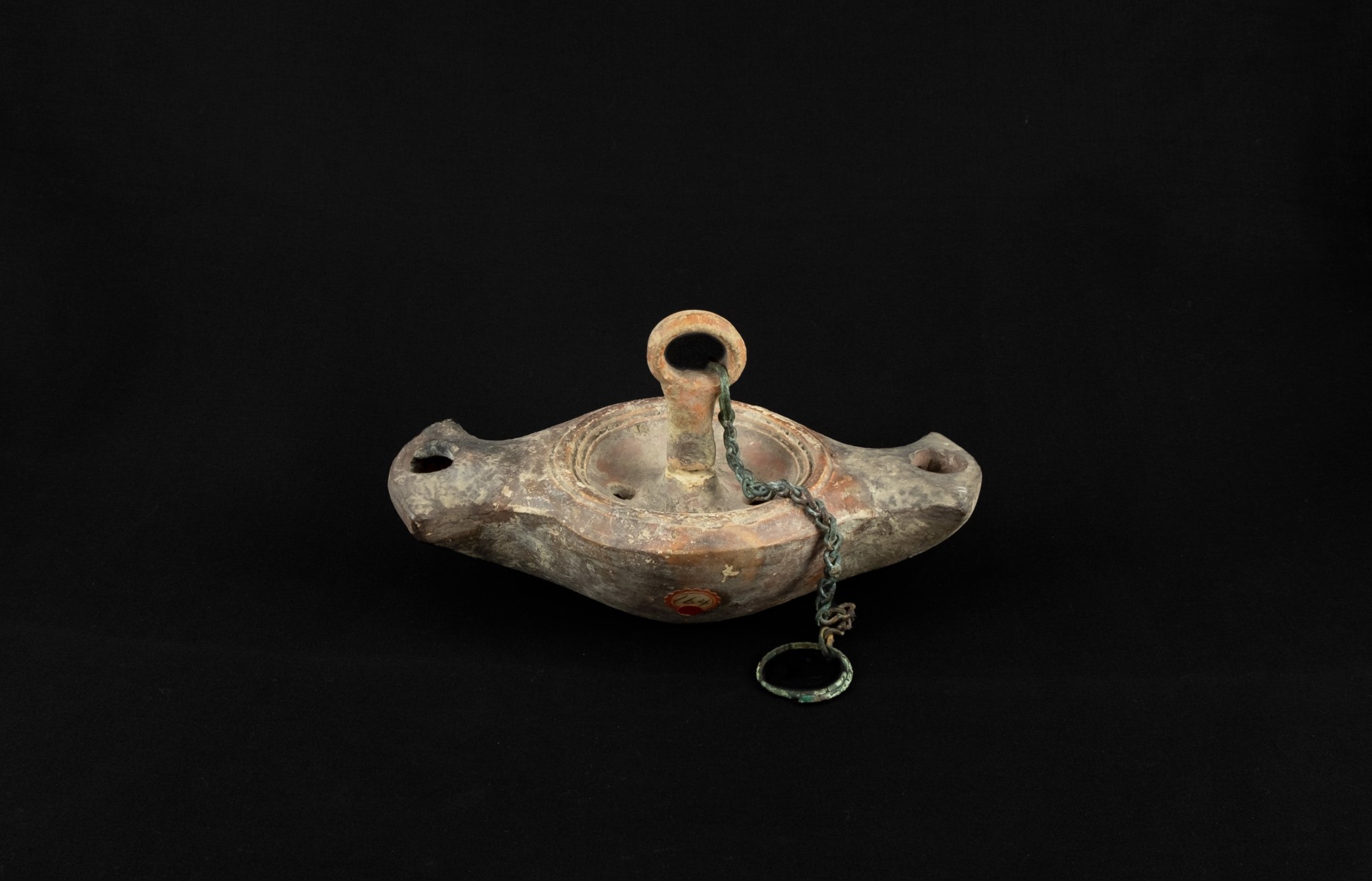 Red vanished clay. Two nozzles. Circles around discus. Roman.