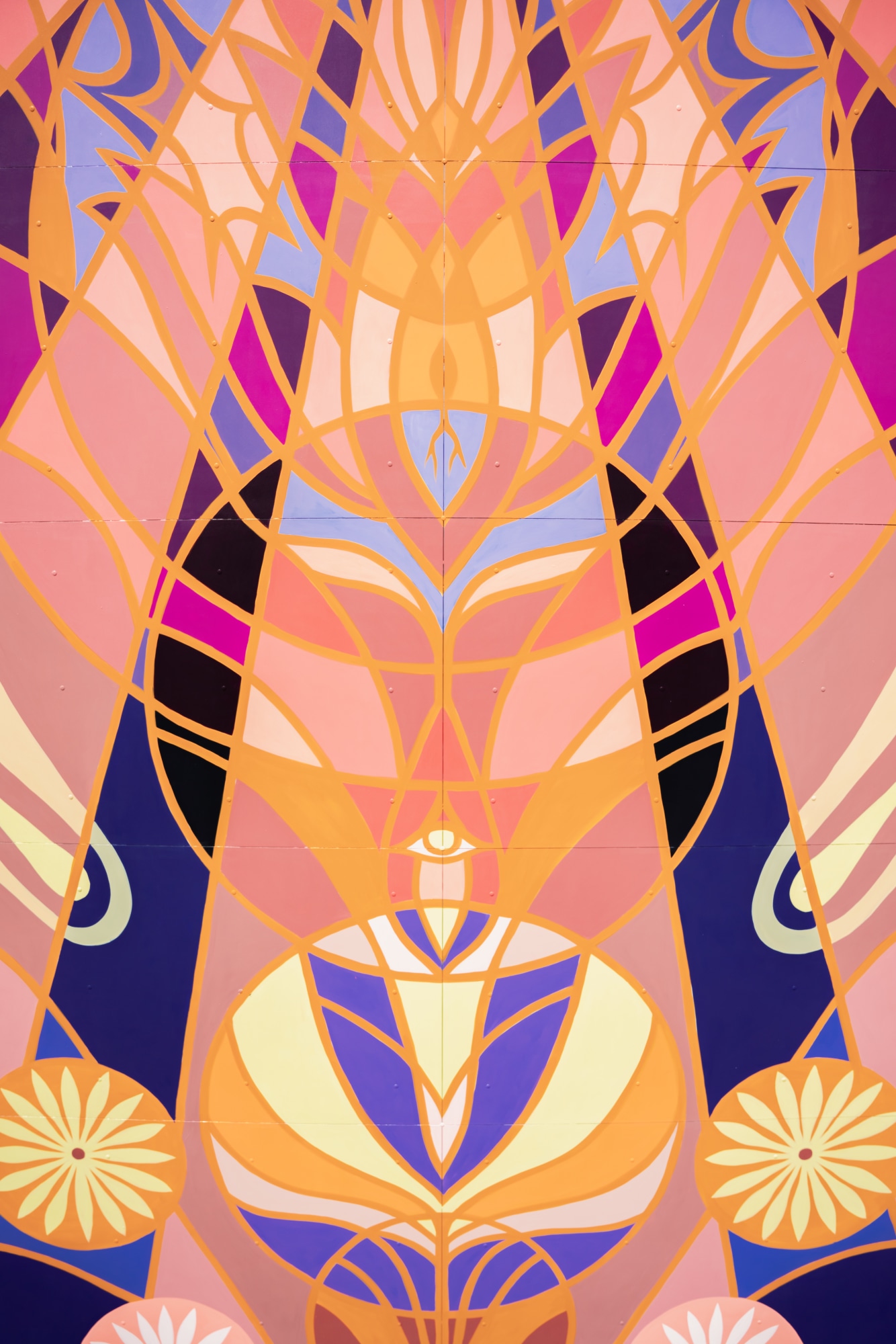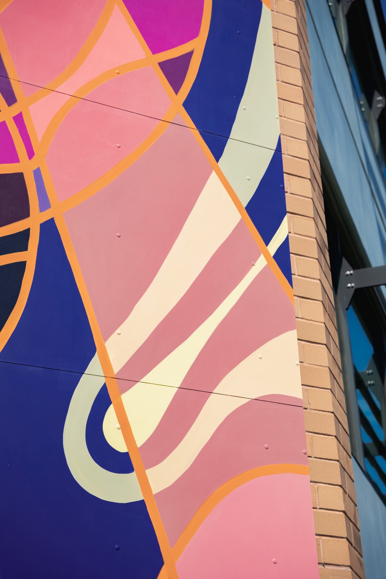 - acrylic, anti graffiti coating on polymetal panels. 36 feet high x 15 feet wide.