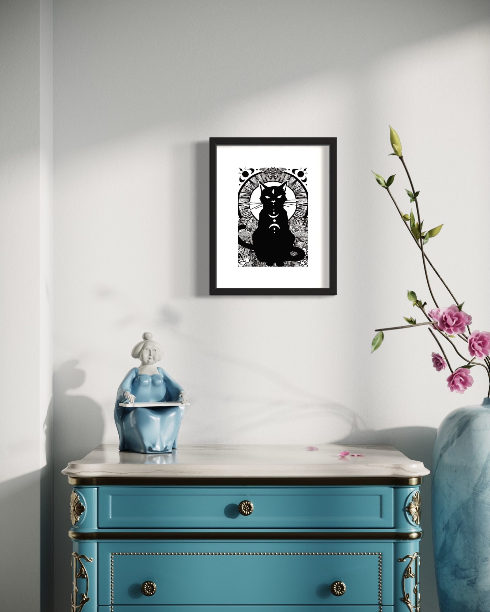 In the enchanted realm of my artistic expression, I present to you a drawing that delves into the mystical bond between a Wiccan practitioner and their familiar feline companion. This creation is a testament to the deep connection between the magical and the mundane, where the ordinary becomes extraordinary through the eyes of a witch and her trusted companion.