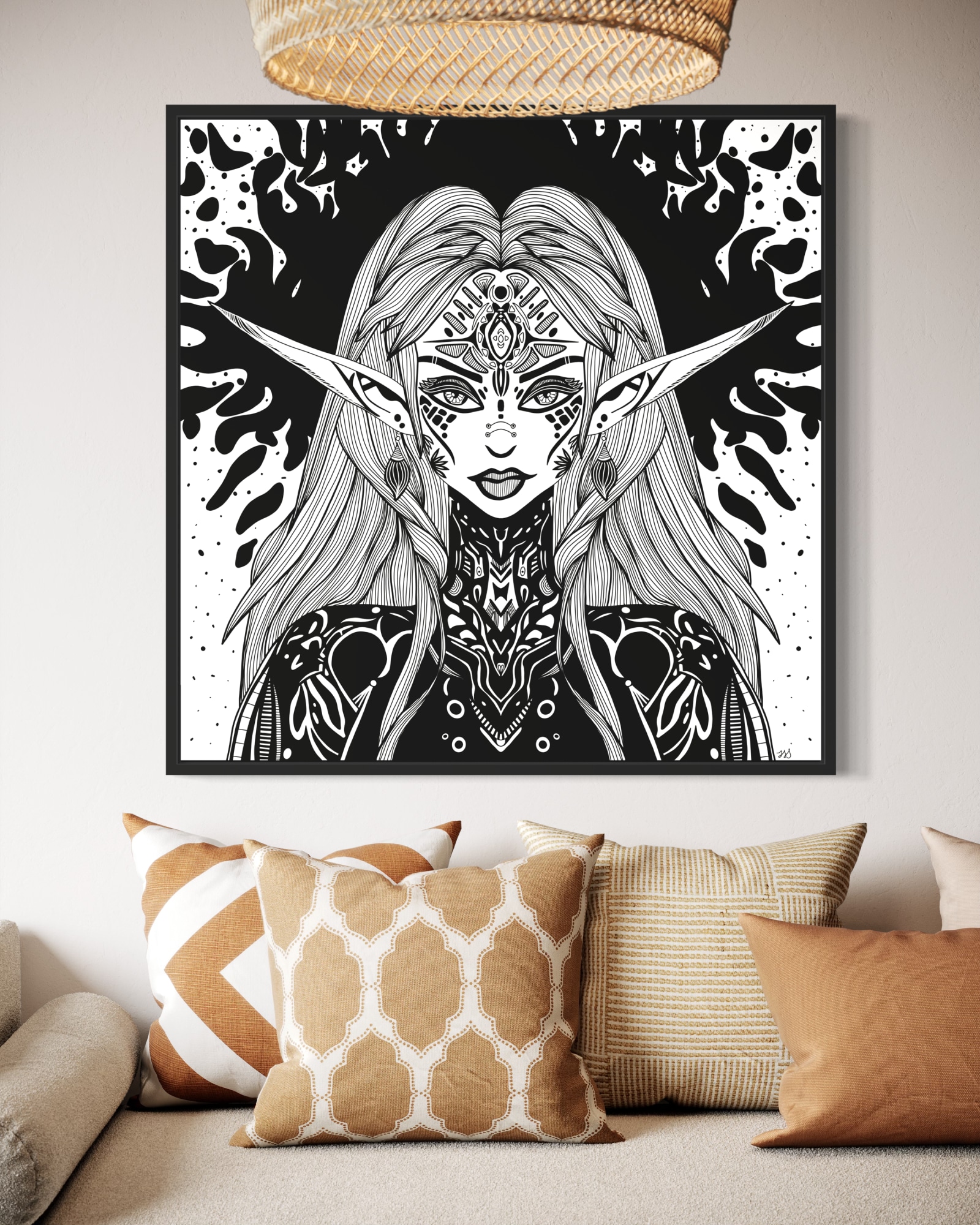 In this drawing, I sought to capture the essence and power of the fire goddess, embodying her as a radiant force of nature. The fiery hues and dynamic lines convey her strength and intensity, while also hinting at her transformative and purifying qualities. The fire goddess stands as a symbol of passion, vitality, and renewal. Her presence ignites the imagination and stirs the soul, inspiring awe and reverence. Through her, we are reminded of the primal energy that courses through the universe, fueling creation and destruction in equal measure.