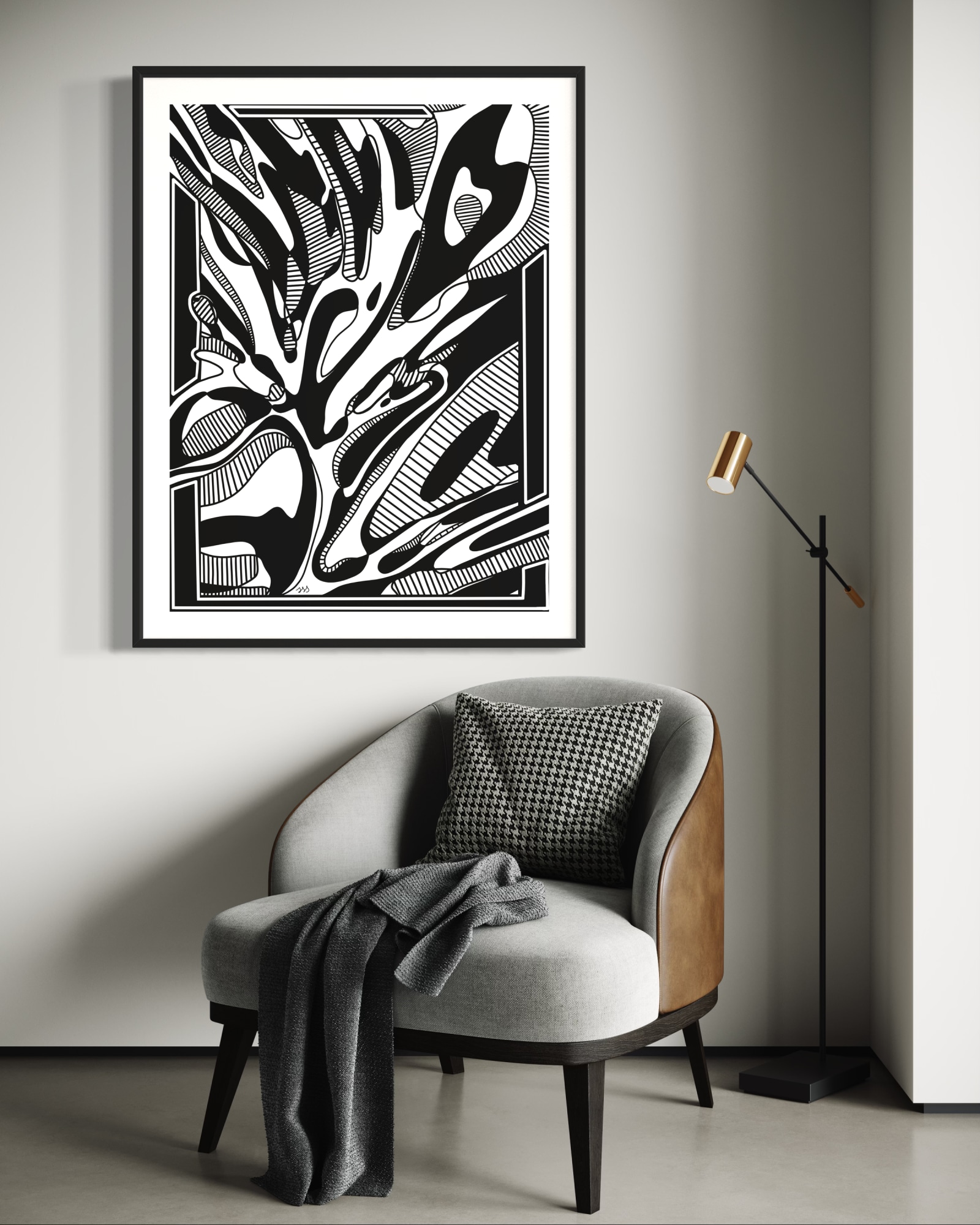 "Push" refers to elements in the artwork that visually advance towards the viewer. These elements might be characterized by bright colors, strong contrasts, bold lines, or prominent textures. The "push" creates a sense of immediacy and presence, drawing the viewer's attention.