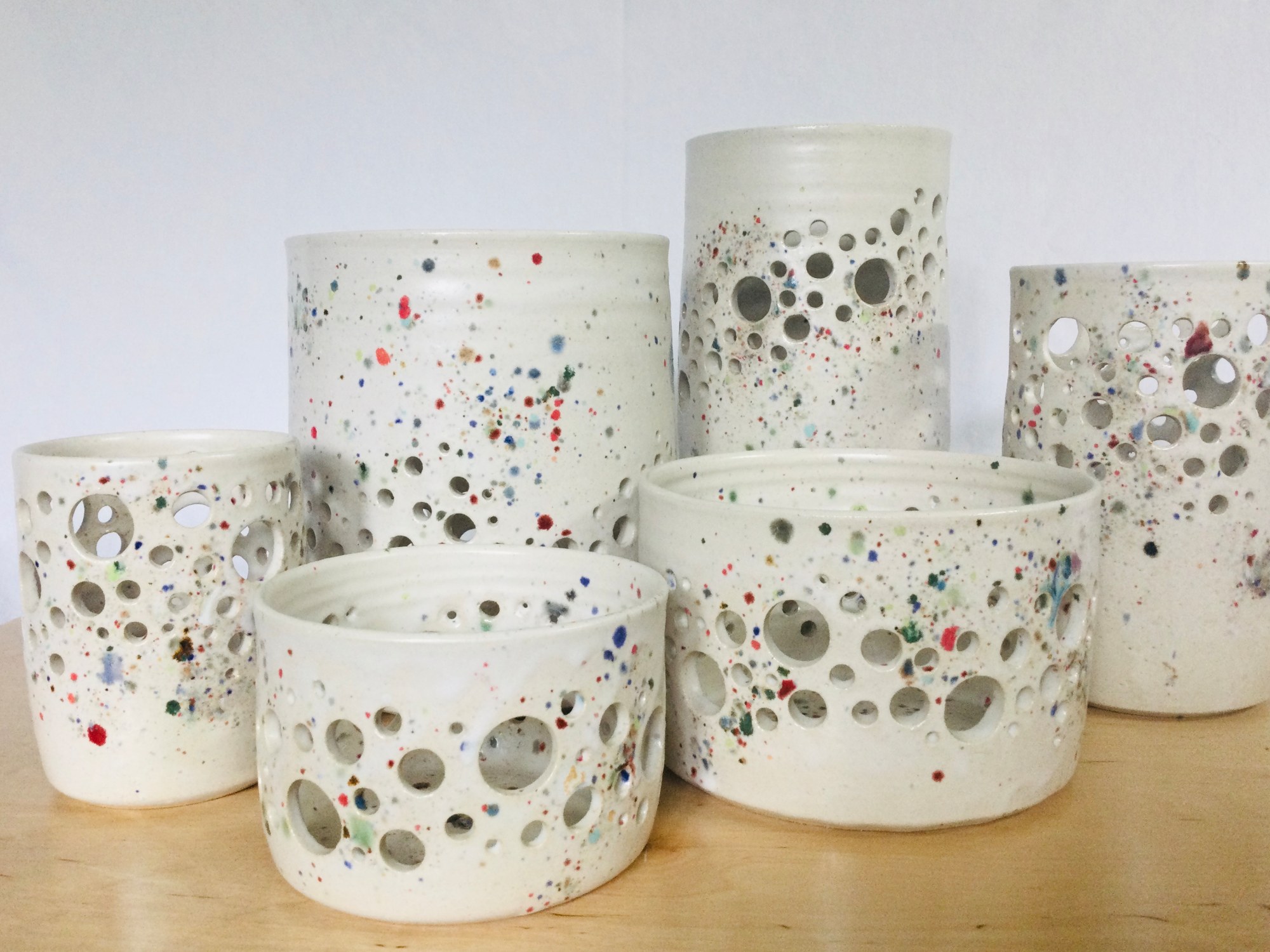 • Subject Matter: White rainbow speckled or coloful striped candle lit lantern