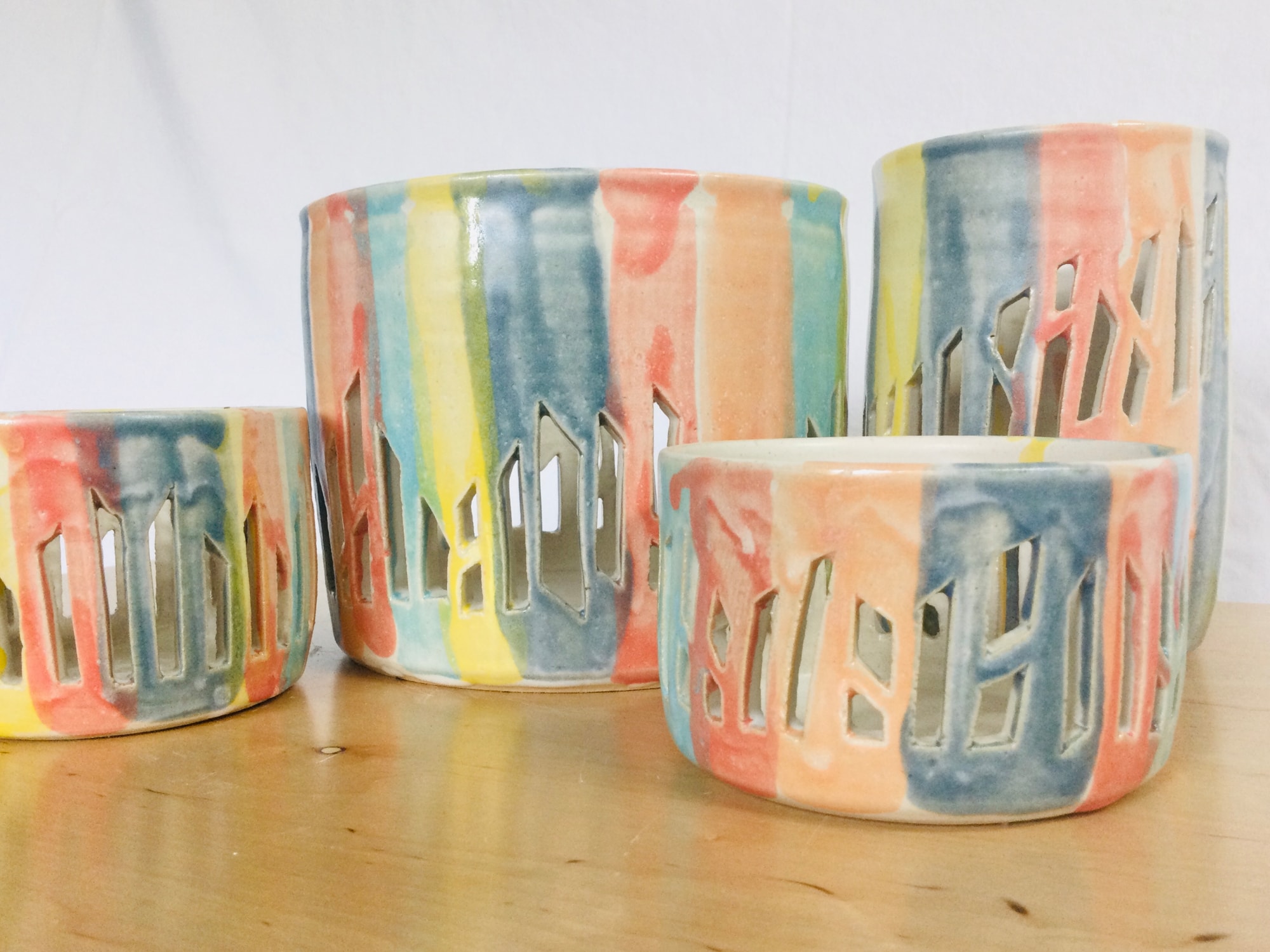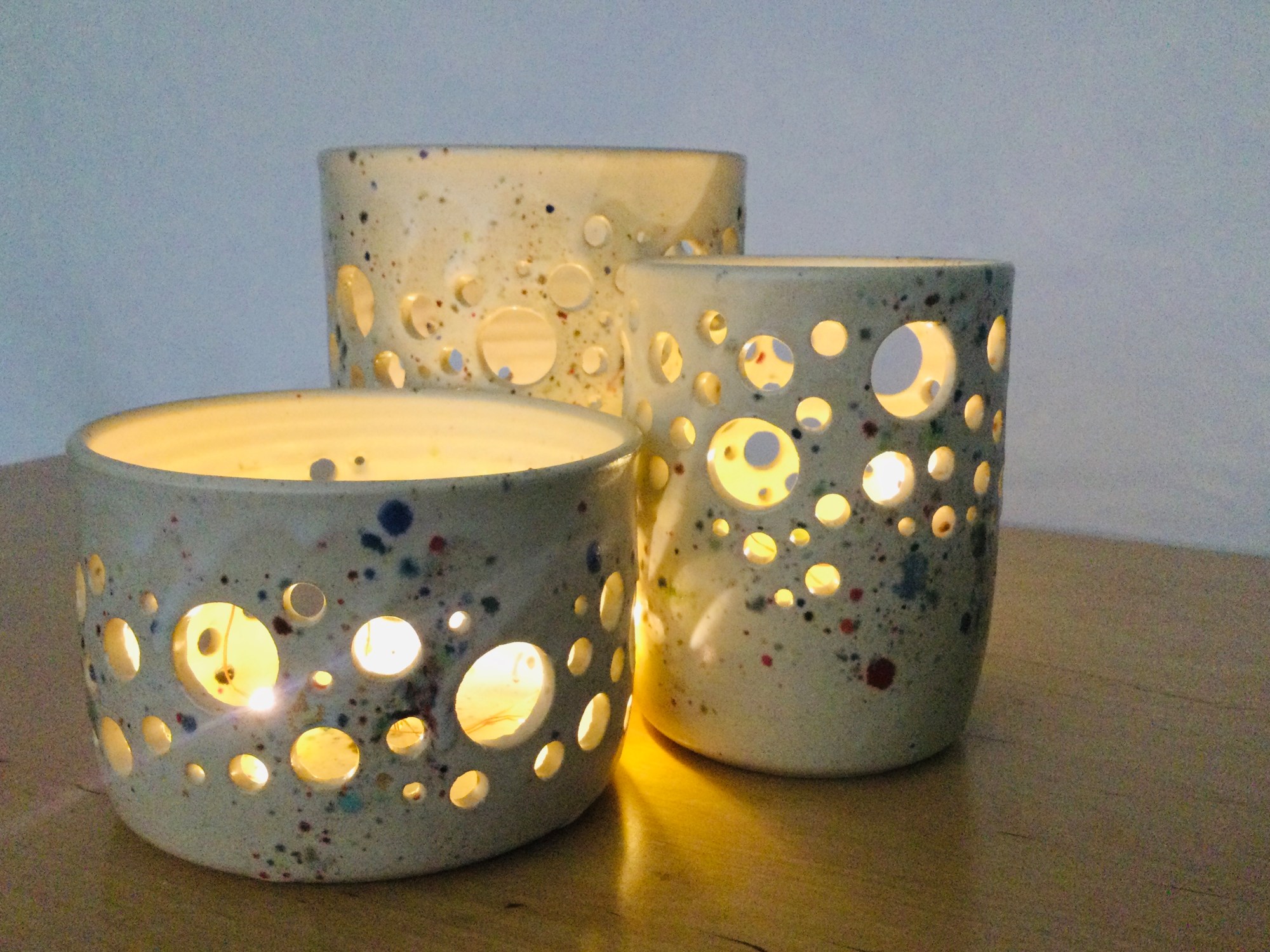 • Subject Matter: White rainbow speckled or coloful striped candle lit lantern