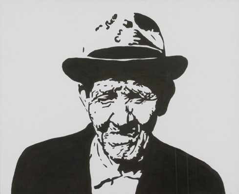 The ink portrait entitled 'Man from Appalachia' is a public art piece by artist April Elkin. The portrait depicting an elderly man can be found on the third floor of the Municipal Building located in Downtown Roanoke.