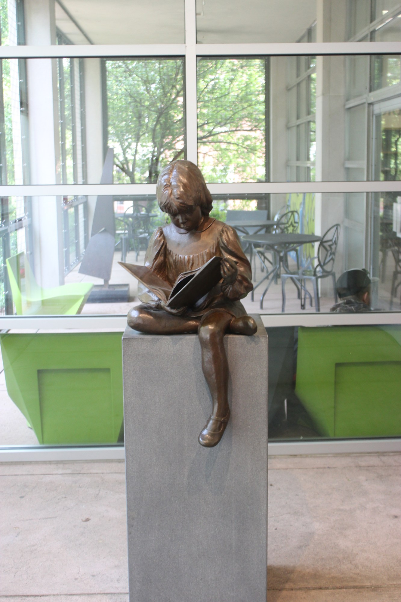 The bronze sculpture entitled 'Once Upon a Time' is a public art piece by local artist Betty Branch. Betty Branch is known for her figurative sculptures. 'Once Upon a Time' portrays a young figure reading. Brach's public artworks are located all over Virginia but this specific piece can be found in the Main Branch Library located in Downtown Roanoke.