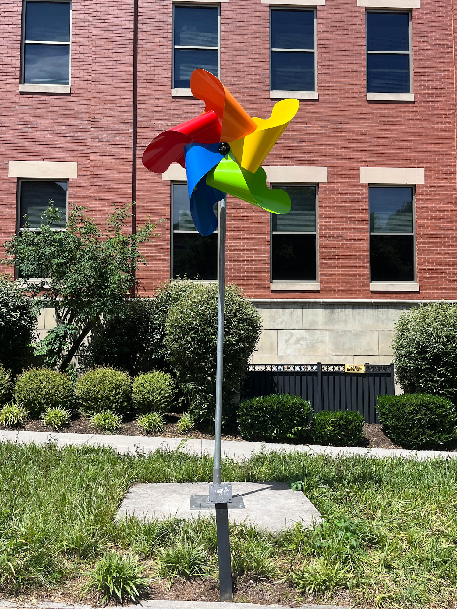 "Erected high outdoors, the pinwheel will harness the power of the wind, creating a mesmerizing wave of color and motion. In this way, the wind itself becomes part of the sculpture, reinforcing its connection to nature and the surrounding environment. Symbolically, the pinwheel represents resilience and continuity—as long as the wind blows, it spins, mirroring the rhythm of life itself."