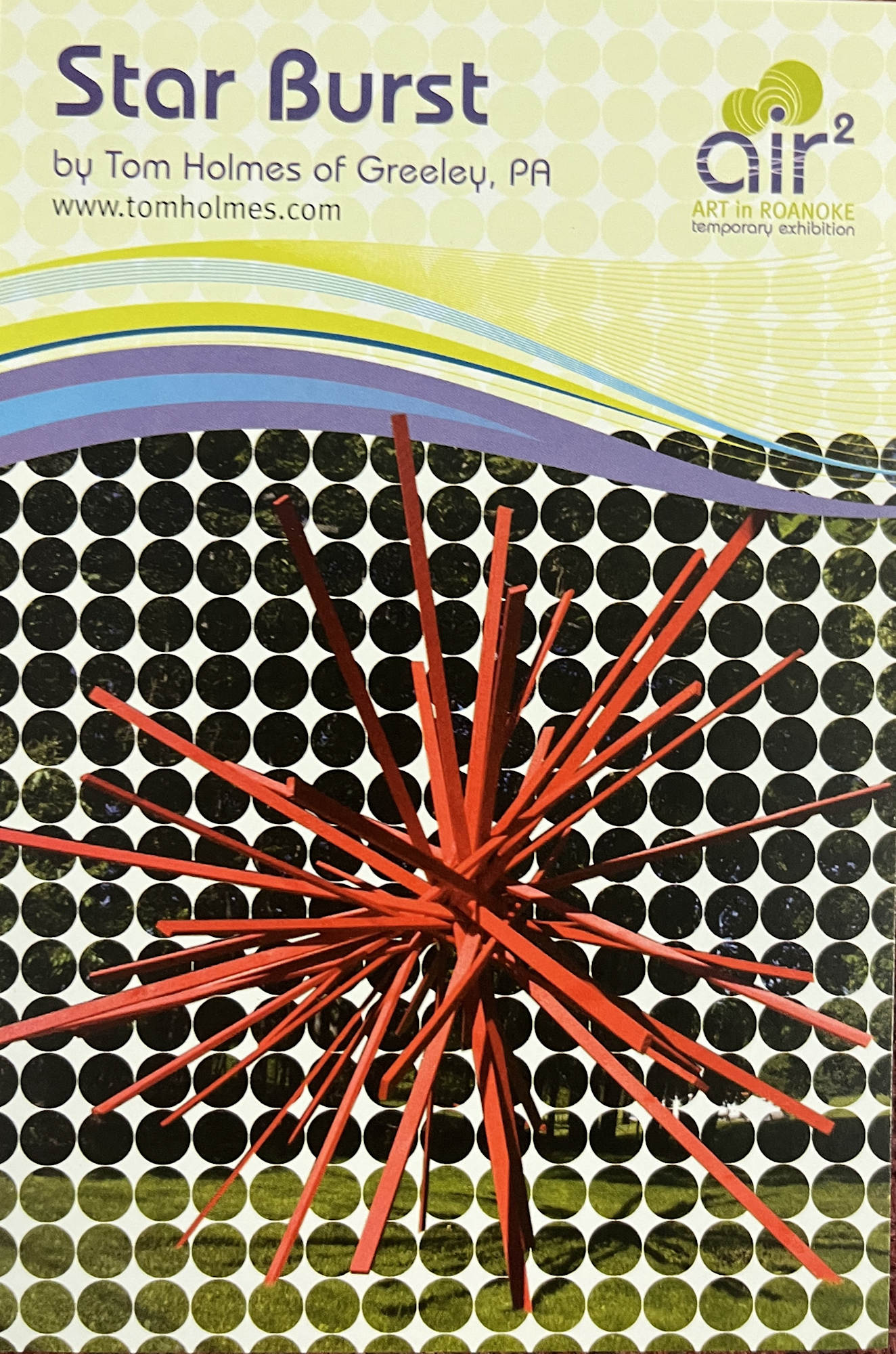 Created by Tom Holmes, "Star Burst" was in the second installment of the Art in Roanoke (AIR) temporary exhibition from September 2010 to March 2012. Holmes prepares his materials and then creates each star burst in its intended location making each work unique to its environment. He describes his stars as creations that “speak to the essential permutations of math and physics in a natural world”