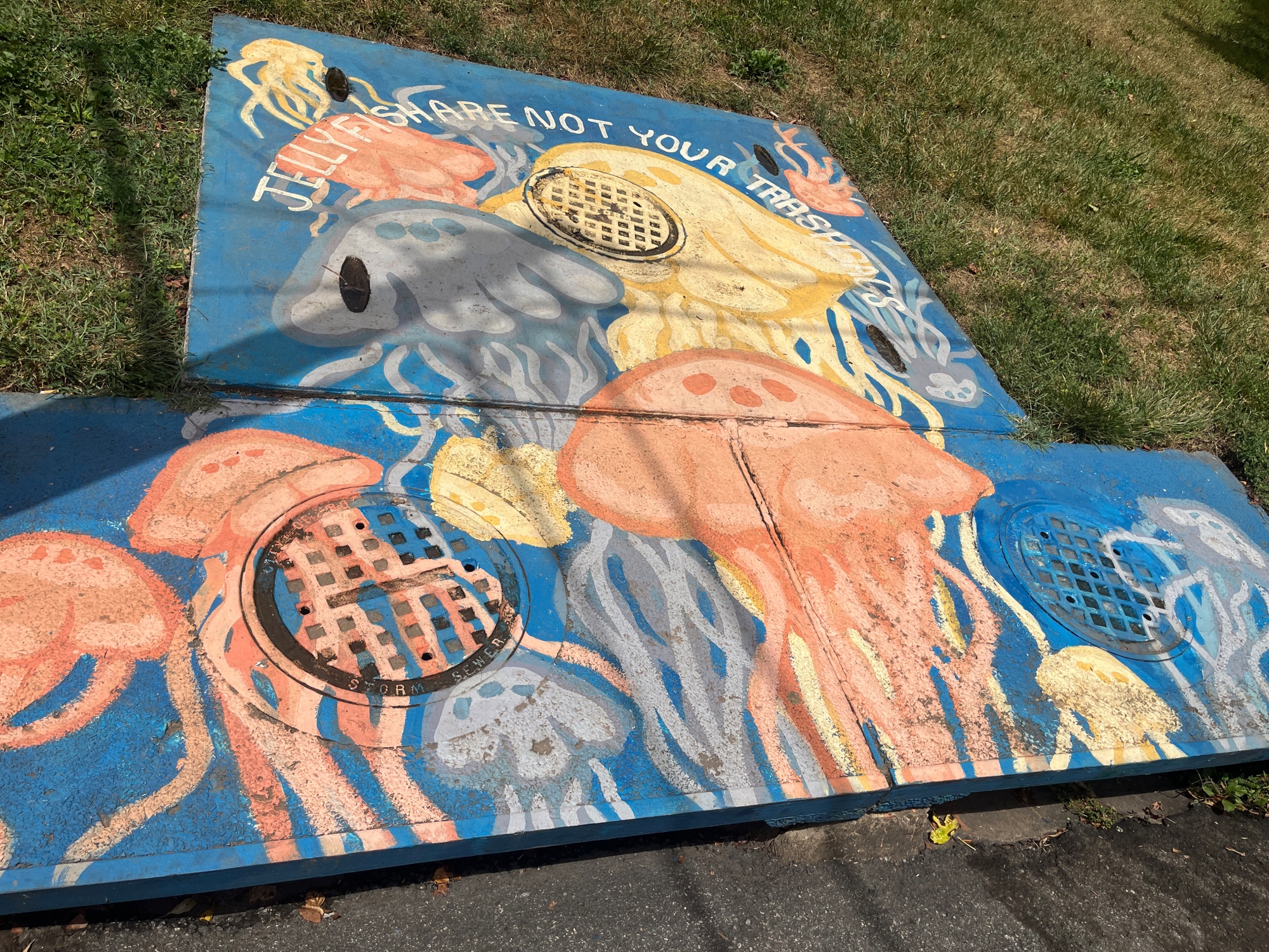 The Roanoke Inlet Art Project was an initiative by the City of Roanoke Stormwater Division and the Roanoke Arts Commission to raise awareness of the importance of protecting the waterways and the role it plays in preserving the nature of the region. Each piece is related to a water-inspired design. The initiative has been undertaken twice, the first in 2018 and the second in 2022, to draw attention to the storm drains that can be hidden in plain sight and raise awareness about stormwater pollution.