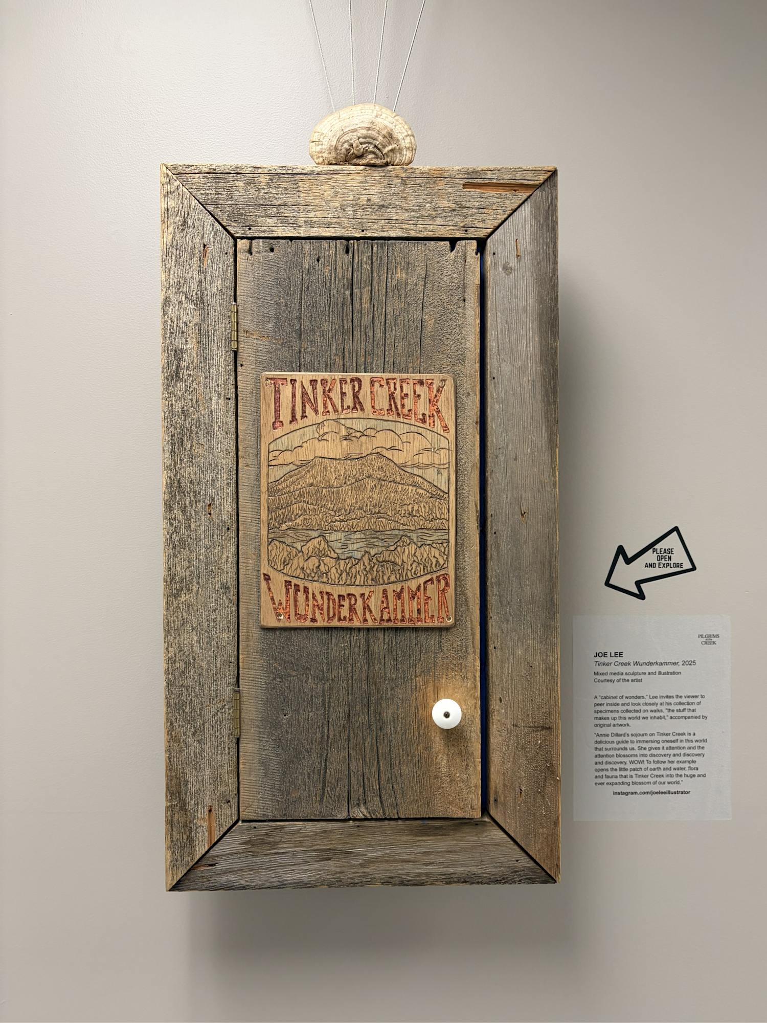 A “cabinet of wonders,” Lee invites the viewer to peer inside and look closely at his collection of specimens collected on walks, "the stuff that makes up this world we inhabit,” accompanied by original artwork.