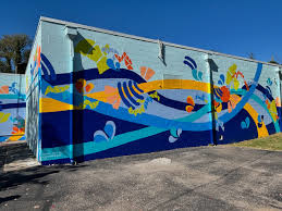 Local artist Rachel Anne Morris painted a vibrant mural on the side of the West End Center. The mural represents the Roanoke River and the mountain area. She made this mural an interactive project for the center's local youth and families. The project was created to build bonds within the arts community and the youth and families of the West End Center.