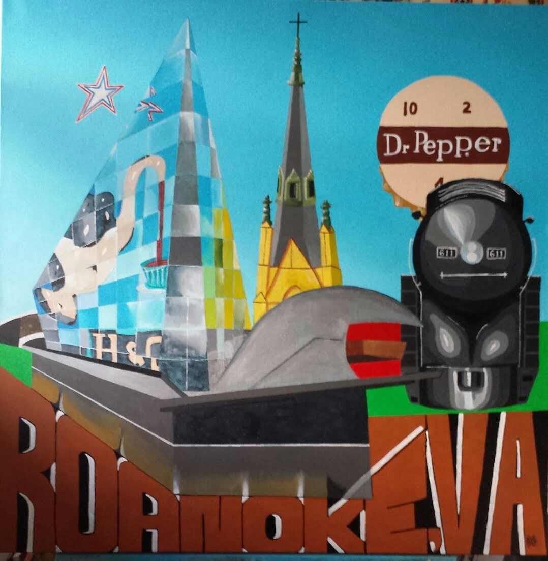 “I love the landmarks that are specific to Roanoke,” adds Wood. “They let you know you are home. “The Mill Mountain Star is a definite example of that; it’s what you look to see when traveling back home from an out of town trip. That familiarity, especially of the people—family, friends, acquaintances—gives me comfort and inspires my paintings.”