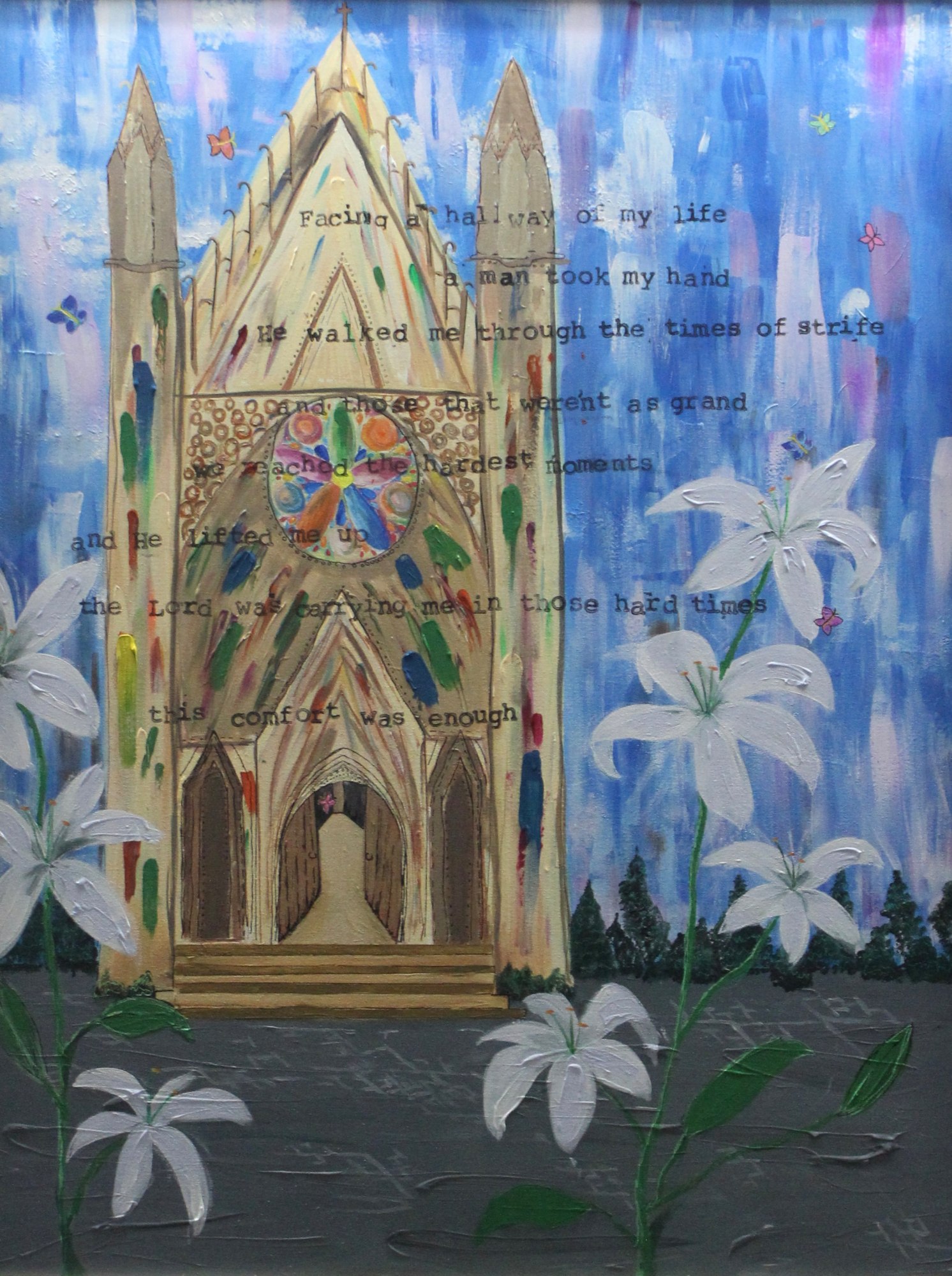 At the age of 13, Bridgette allowed her impressive spiritual strength to guide her. Beginning with an original poem, she shares how she draws on deep faith to carry her through difficult times. With loose handling of paint and gestural layering of color, her painting generates positive energy and hope, reminding us that we don’t have to bear our troubles alone.