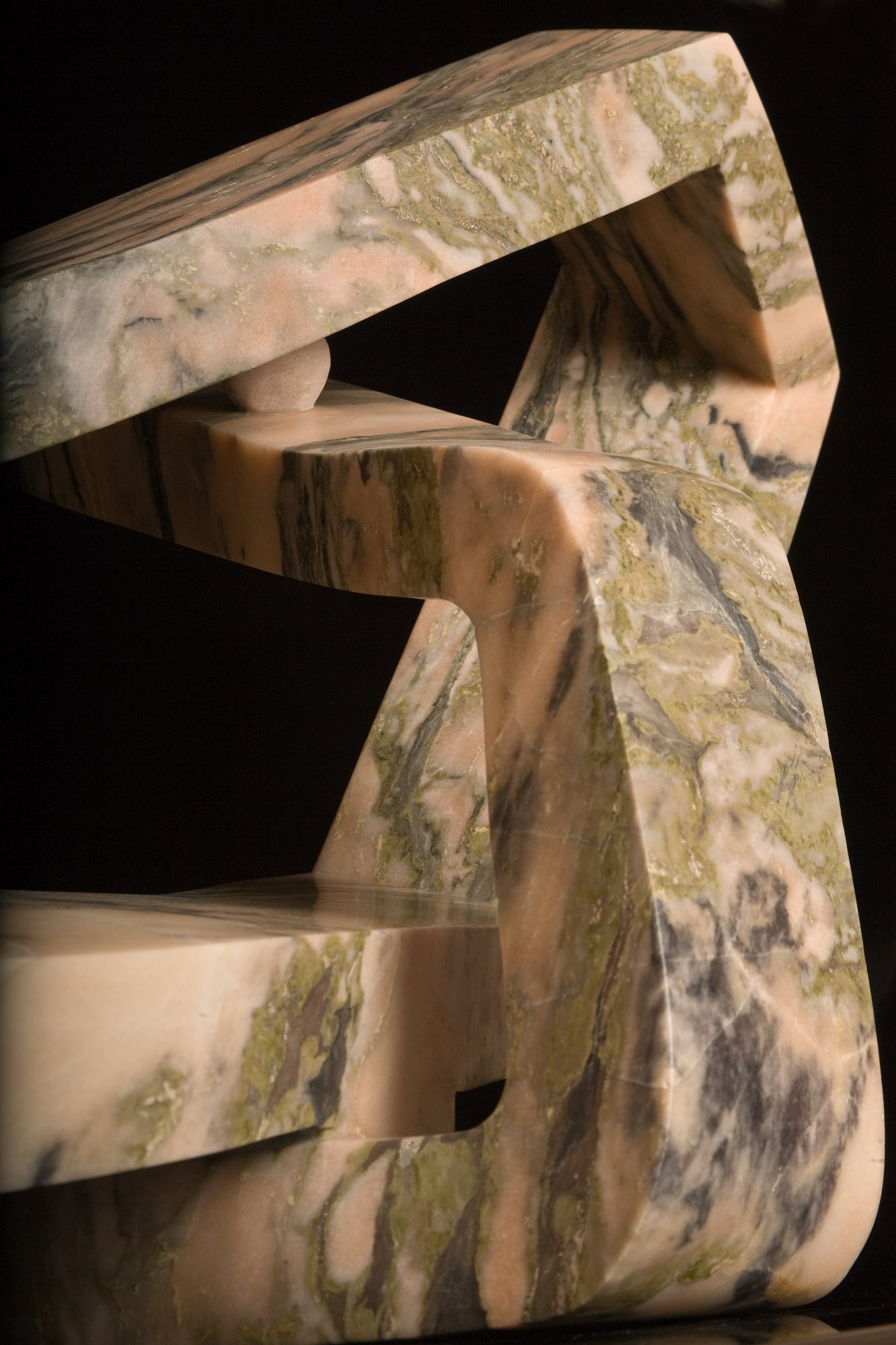 Stone Knots: the anxieties and difficulties of raising children. THE STORY BEHIND THE D KNOTS My youngest son was struggling with drug addiction so I decided to make three knots in his honor, to represent my frustration: D Knot #1, D Knot #2 and D Knot #3. Just like my son, this work of art is a study in contradictions: a hard, heavy stone that appears to be pliable, graceful and elegant. D Knot # 1 was created in 2010. It is carved from a single piece of Watermelon Marble. Dimensions: 17”h X 40”w X 17”d. This piece is on a pedestal. Please feel free to reach out and email me at [email protected] to discuss installation and display or any other concerns you might