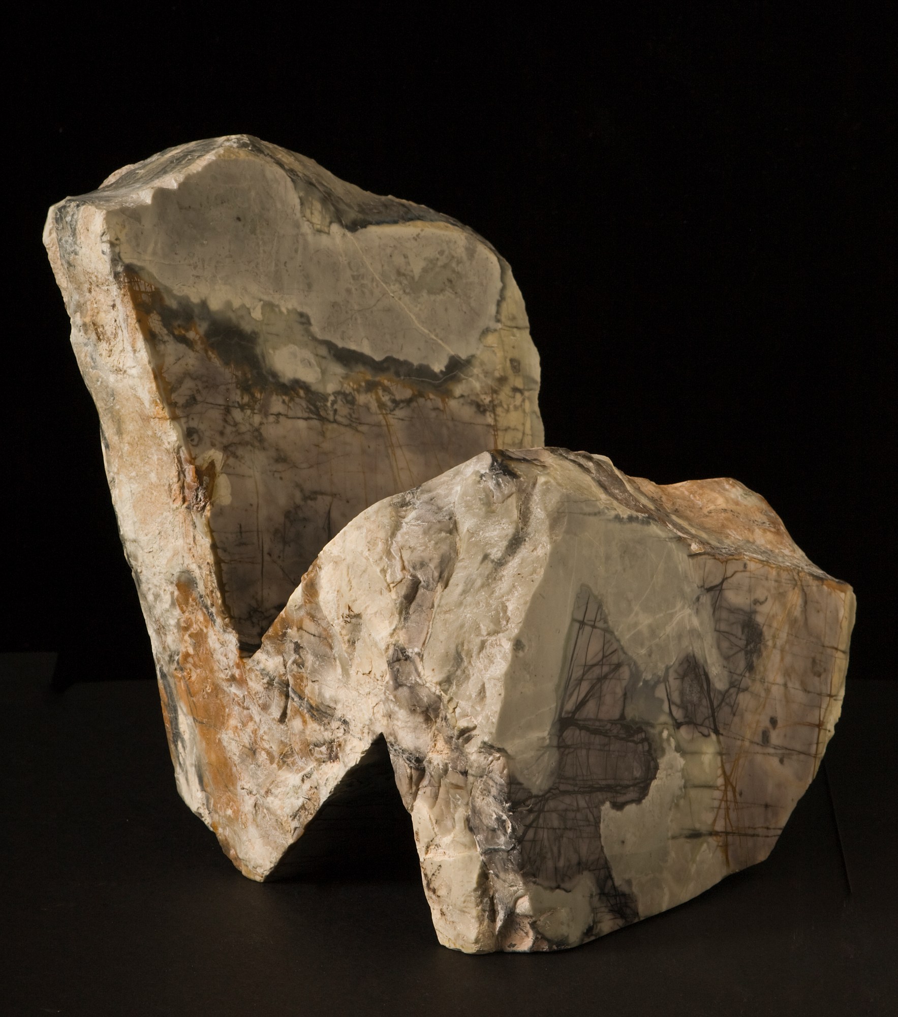 Cut out of a piece of Picasso Marble, then polished to a shine. To me this piece represents a figure sitting down Carved in 2010. Dimensions: 9"h X 7"w X 8"d. Please feel free to reach out and email me at [email protected] to discuss installation and display or any other concerns you might have.
