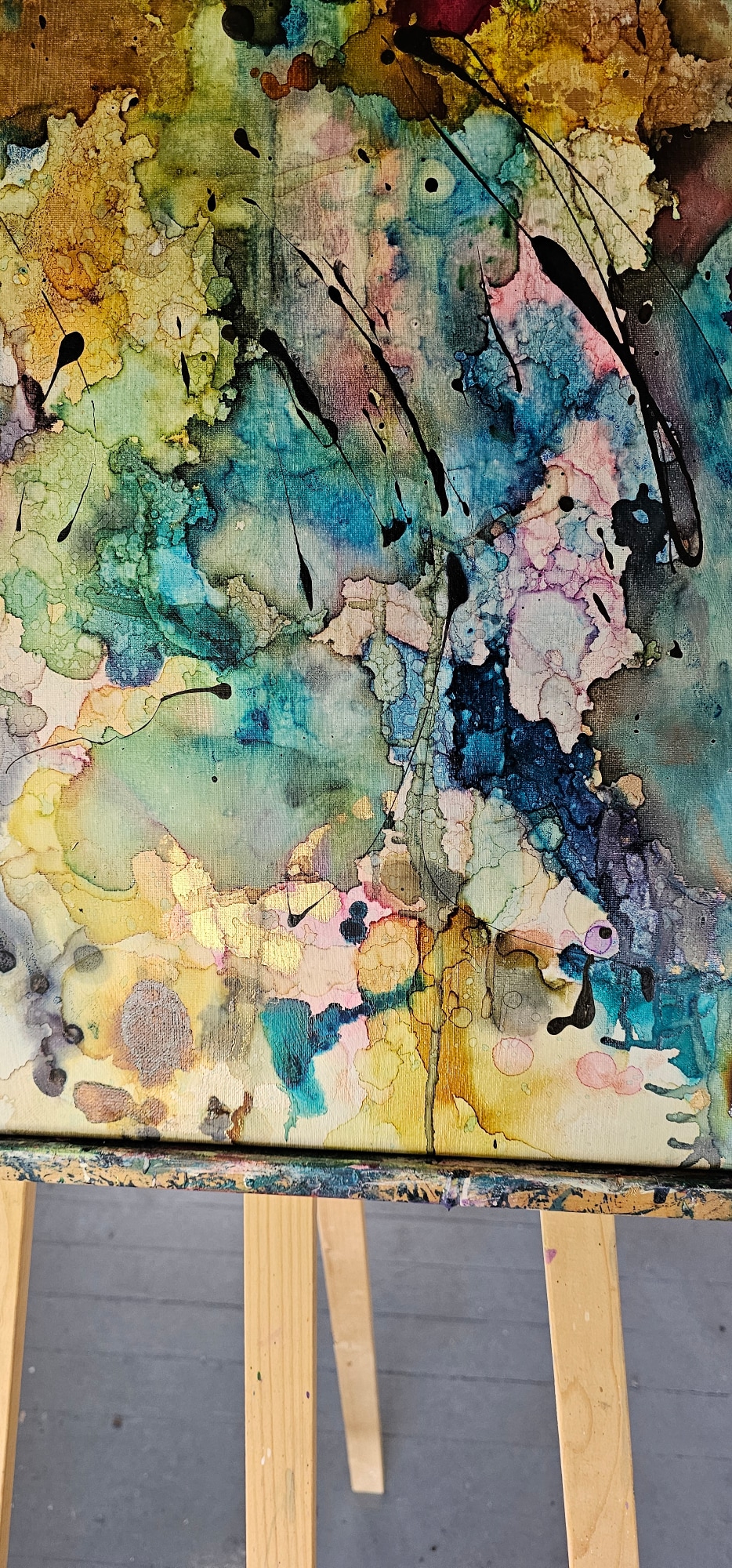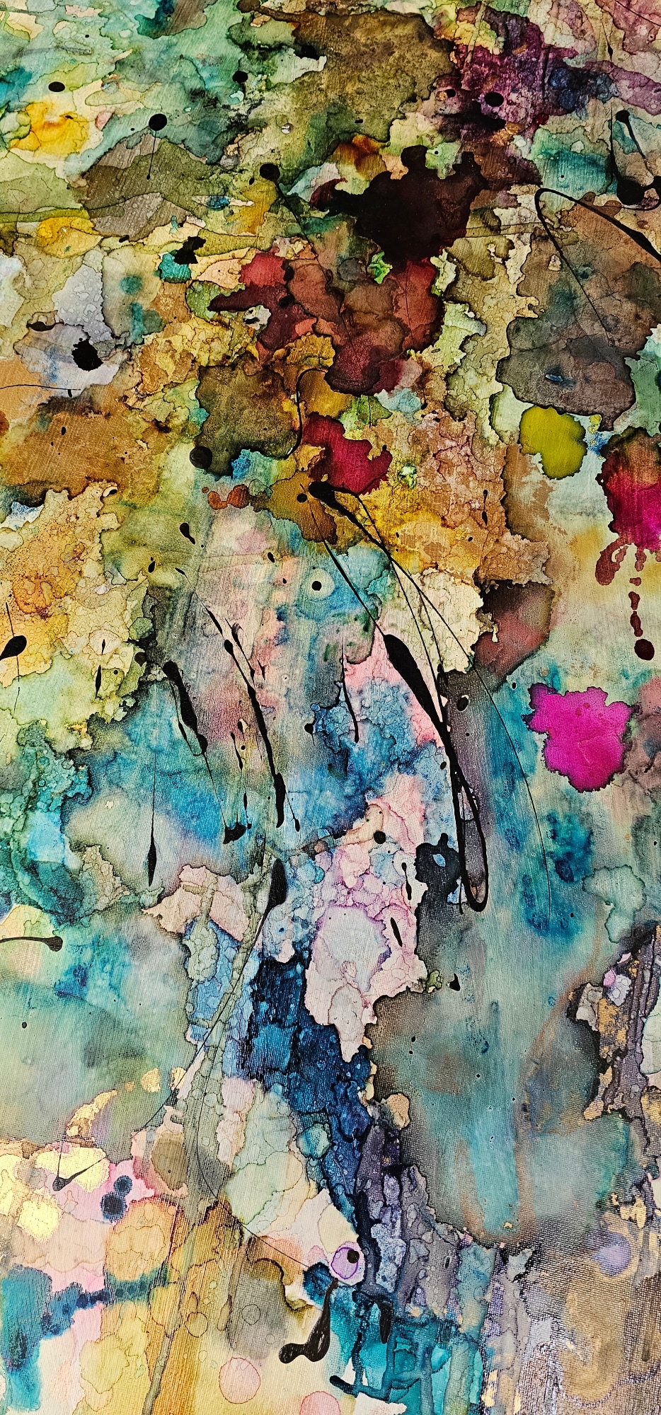 Abstract expressionism. Alcohol Inks and acrylic paint created in fluid flow state.
