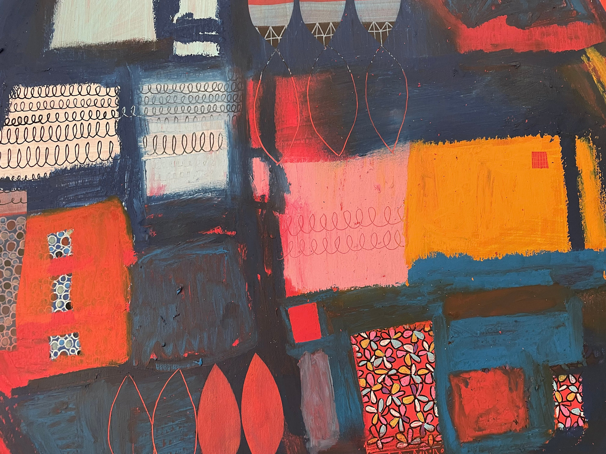 I'm a New Zealand-American self-taught, full-time artist living in Portland Oregon. My work is colorful, textured, layered and a bit quirky.