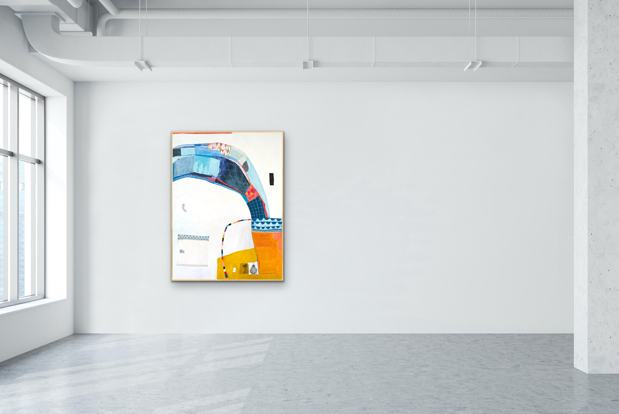 Acrylic paint, ink, wax pastel, on birch panel, floating frame poplar