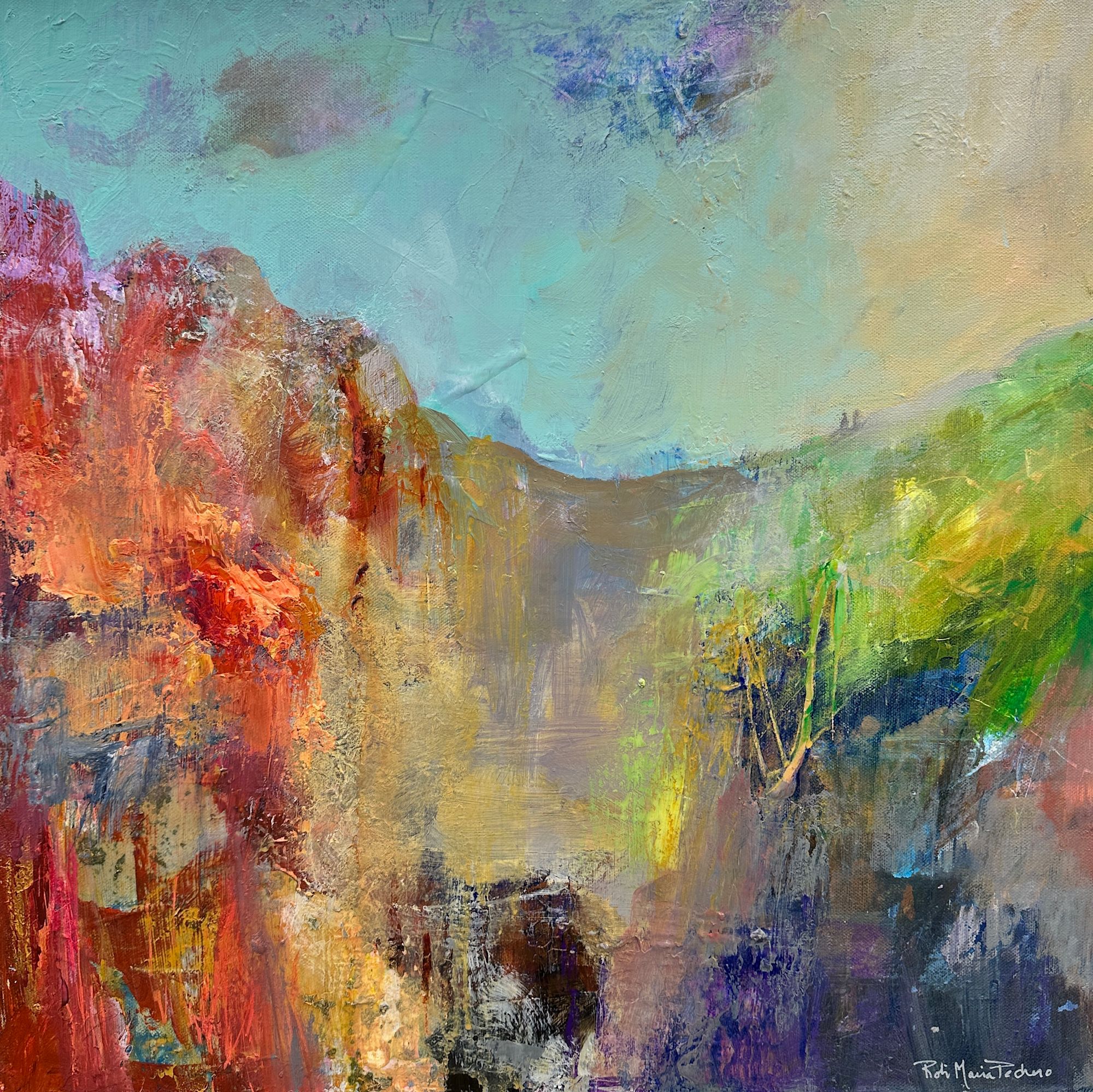 The path was no ordinary trail, it shifted through landscapes that seemed painted by nature itself. Rusty red cliffs soared on their left, streaked with vibrant foliage; a stark gray rock cut through the center like a curious fortress of stone; and on their right lush green stretched endlessly, alive with whispers of the wind.