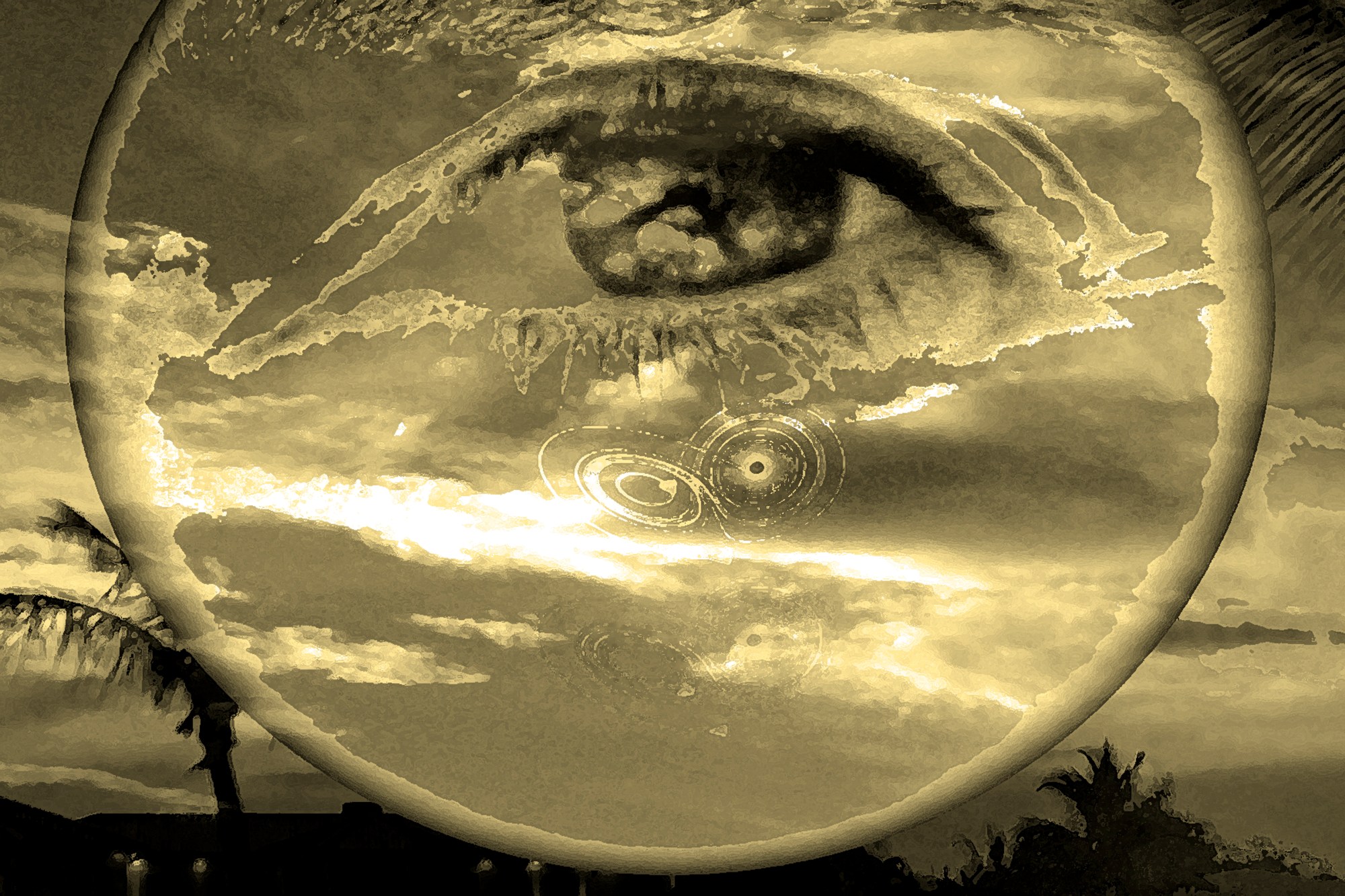 This artwork explores the concepts of time, chaos theory, and the surreal. It depicts a scene that is both fleeting and eternal, where moments blink in and out of existence like the blink of an eye. The viewer's perspective is represented by a surreal eye gazing up at the clouds, which become a canvas for the unfolding chaos.