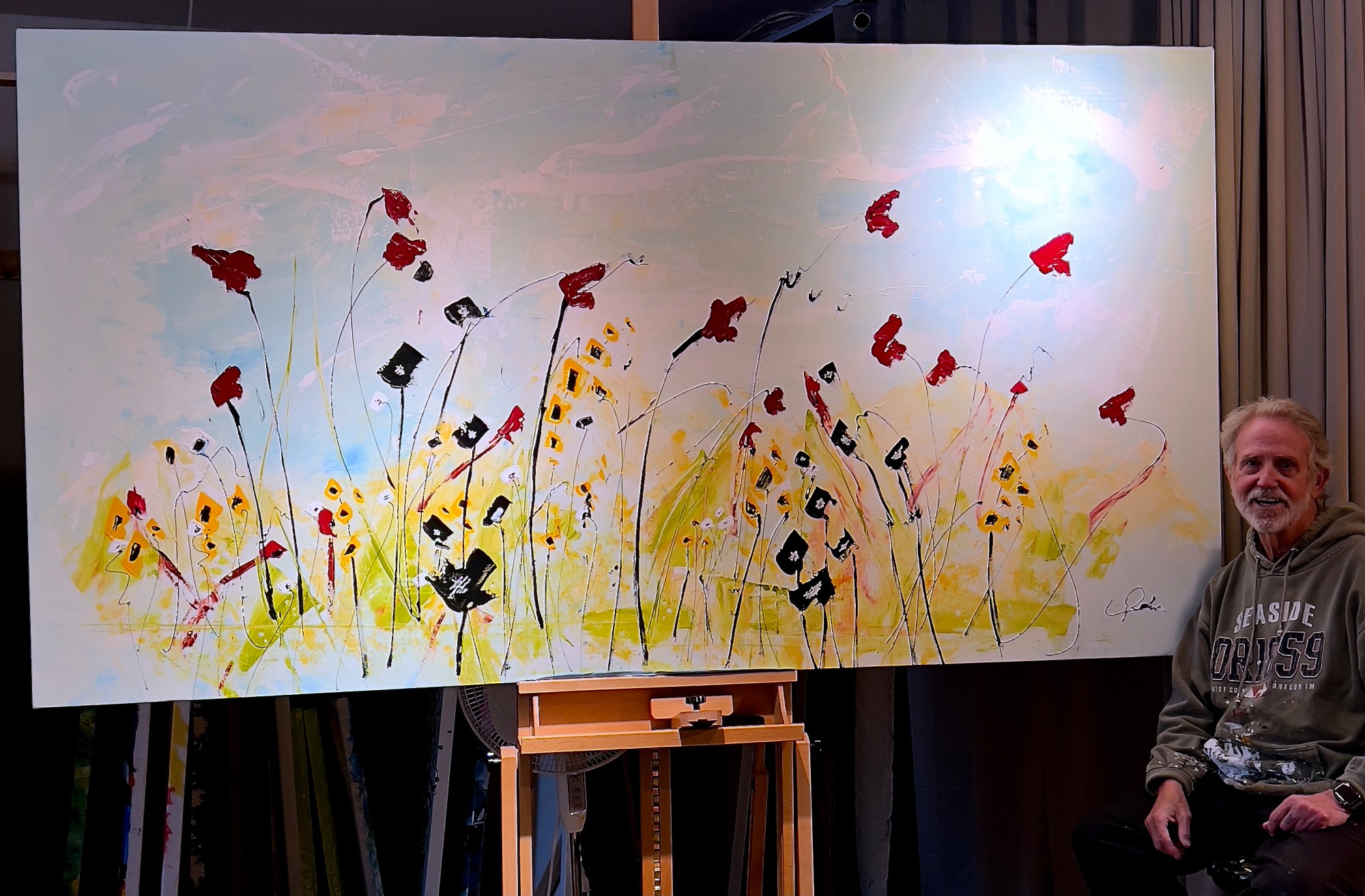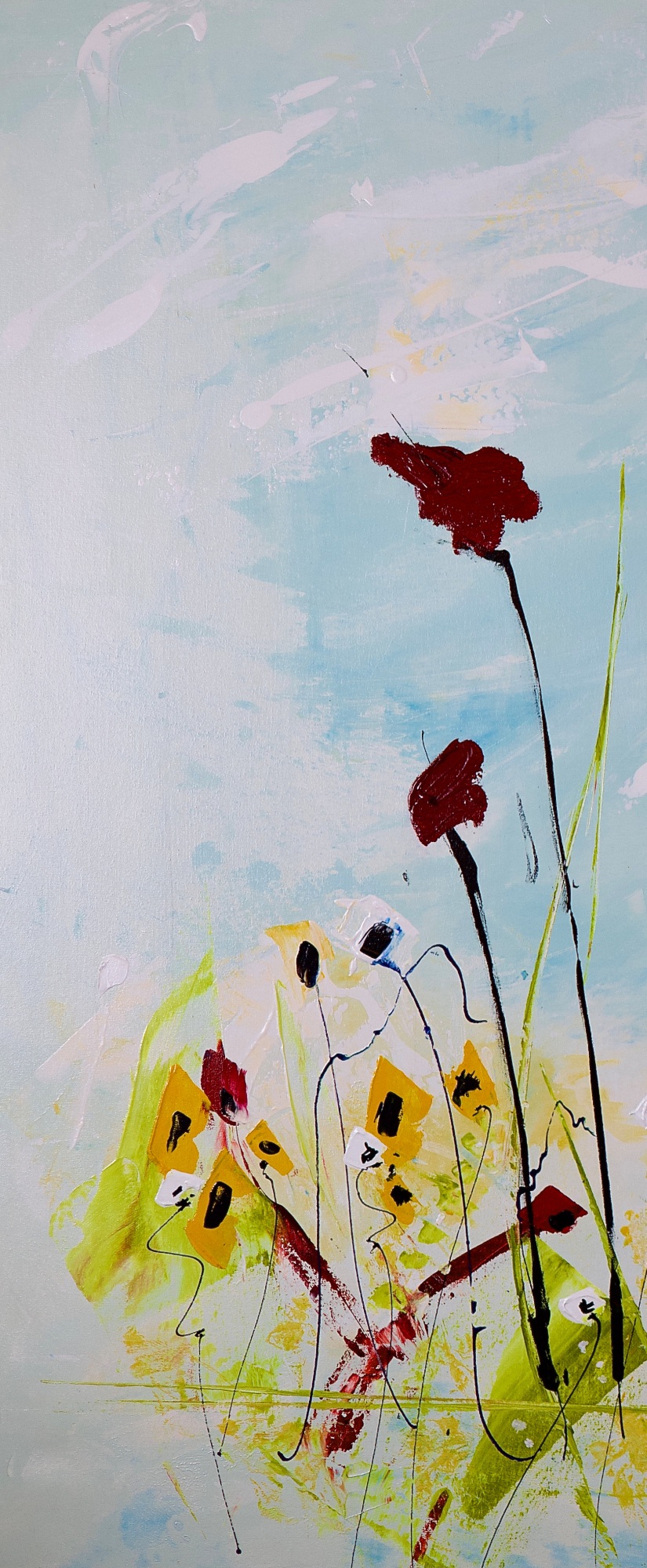 One sunny summer 'Covid' day, I laid down in a field of wildflowers, shooting up into the sky. This painting depicts what I saw and felt.