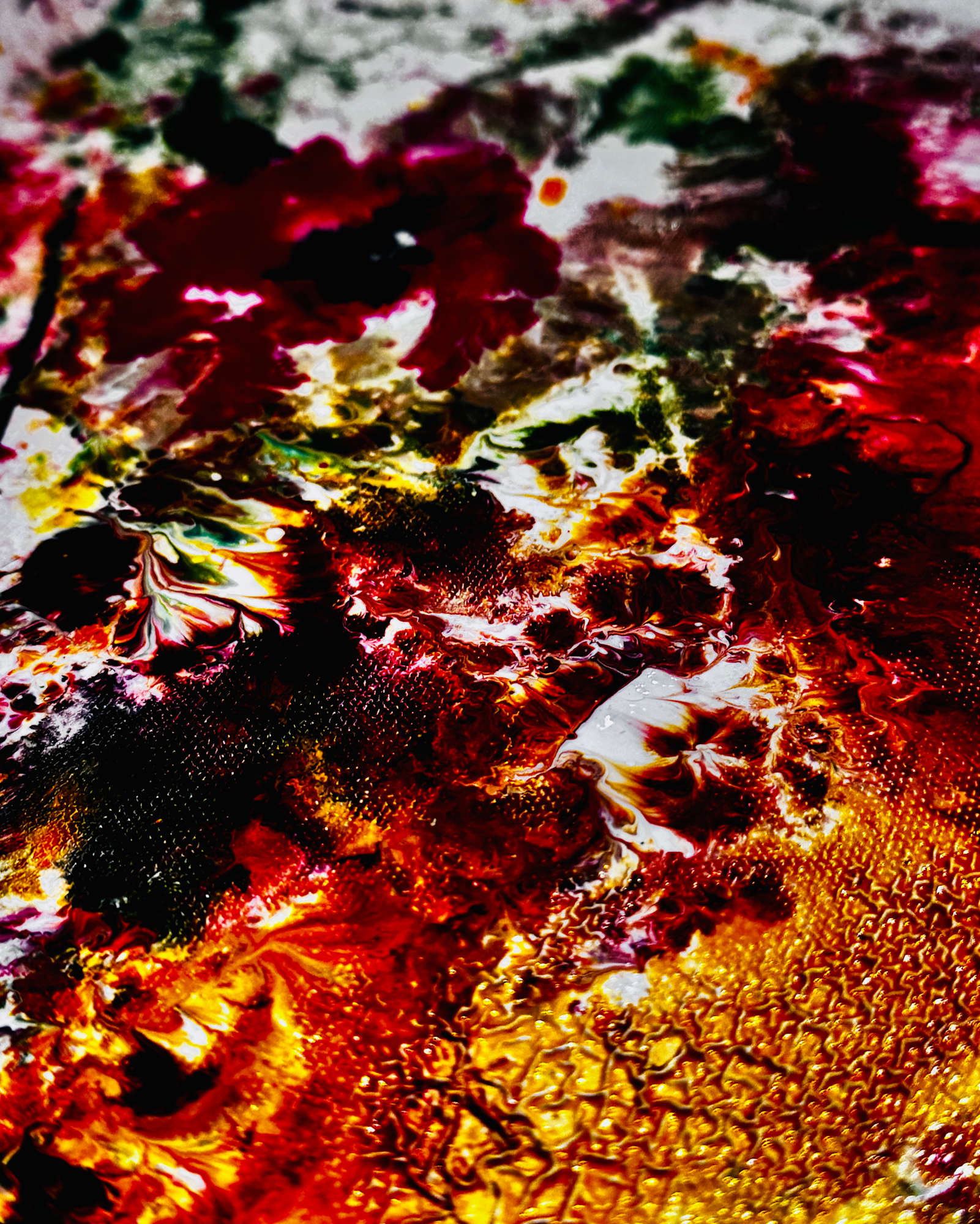 This artwork is inspired by the breathtaking autumn scenery of Whidbey Island, where fall leaves transform the landscape into a picturesque canvas of its own. The piece captures the spontaneity and vividness of that natural beauty, immortalizing it in a timeless celebration of color and form. The viewer is invited to experience this majestic moment where energy and tranquility meet, encouraging a deeper appreciation for the wonders of the natural world.