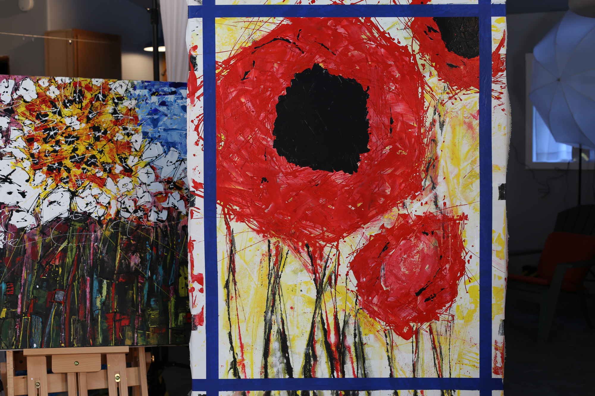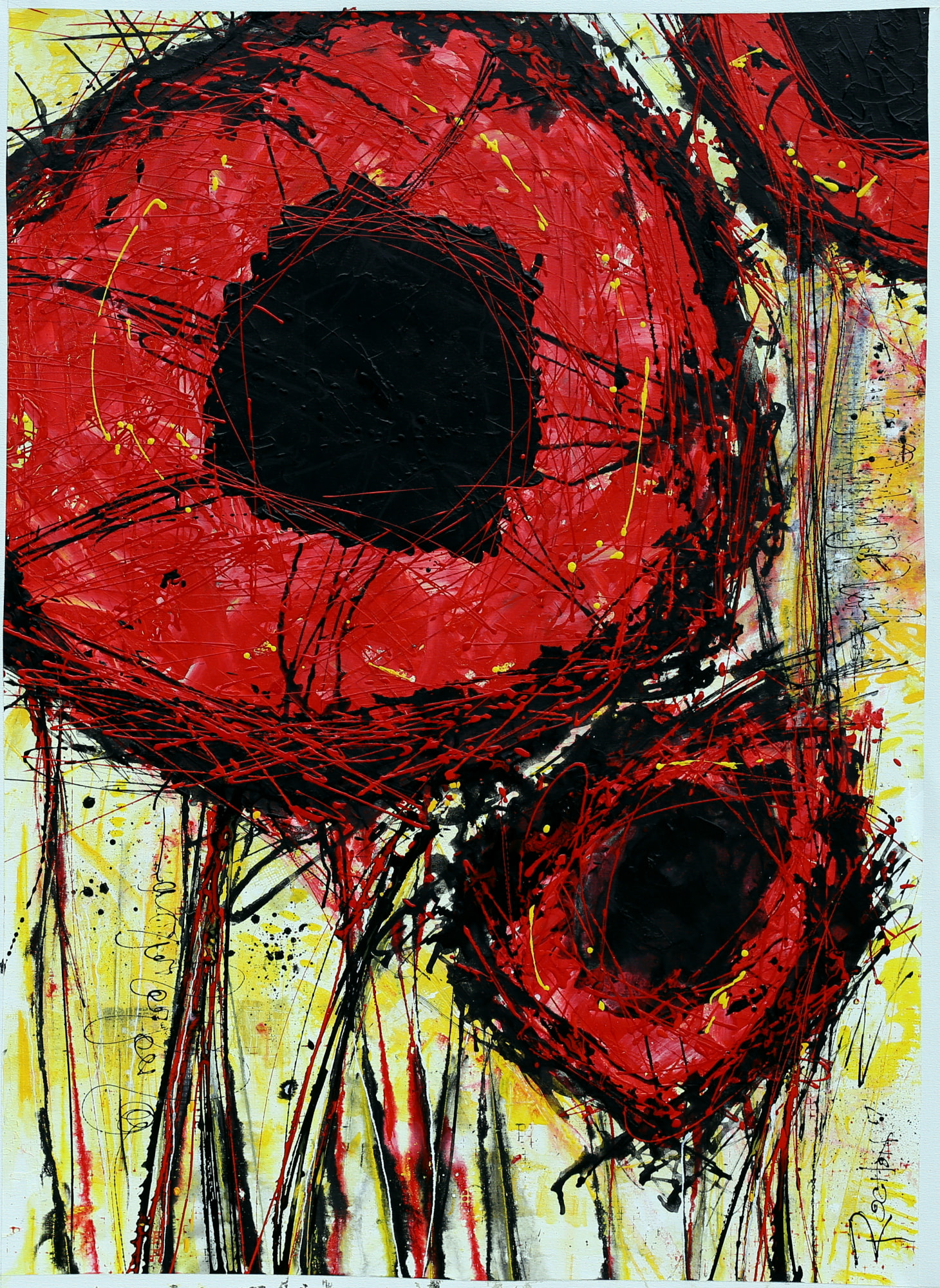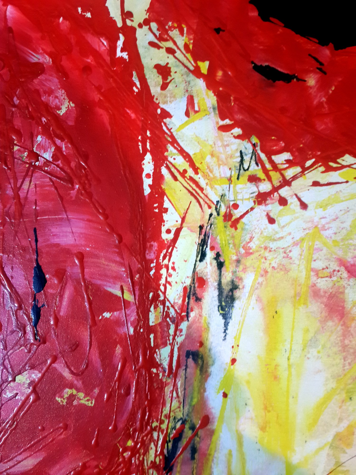 Everyone sees in abstract what they have experienced in life. Some say artists should not reveal what they see. I usually don't. In this painting, at the time I didn't realize the large overbearing figure was my father and the small figure on the bottom was me. My mother was out of the picture. There is much more to this for me, a leaning from father to son, but apparently not a connection. In life, thank God, there would be a very strong connection.