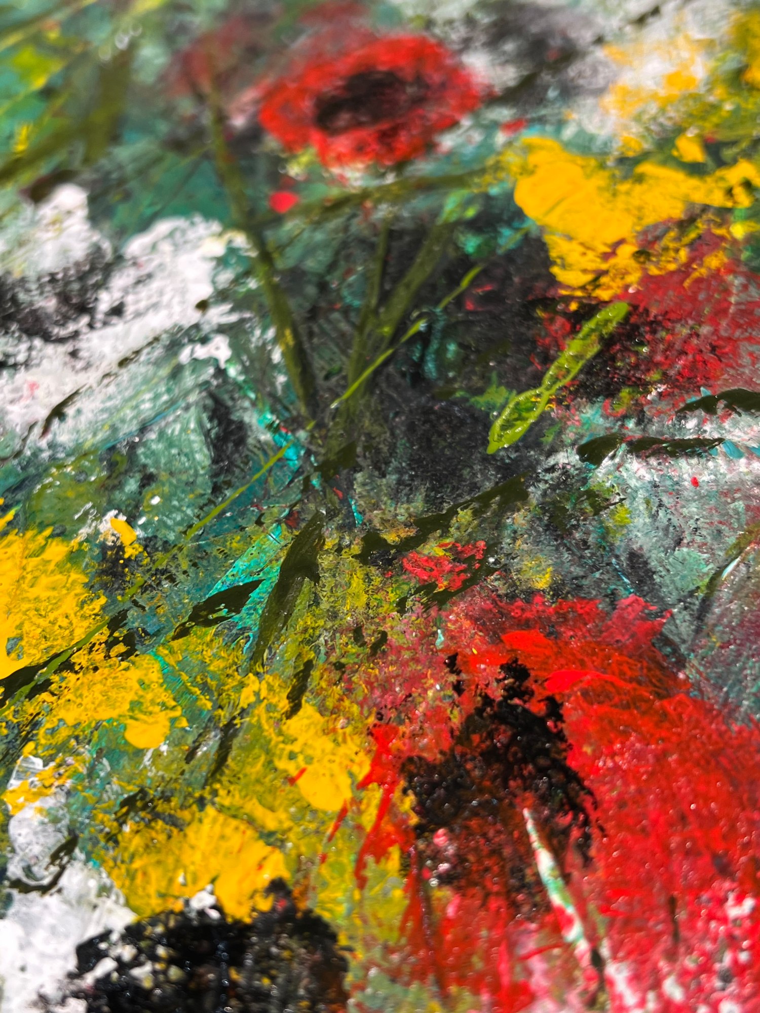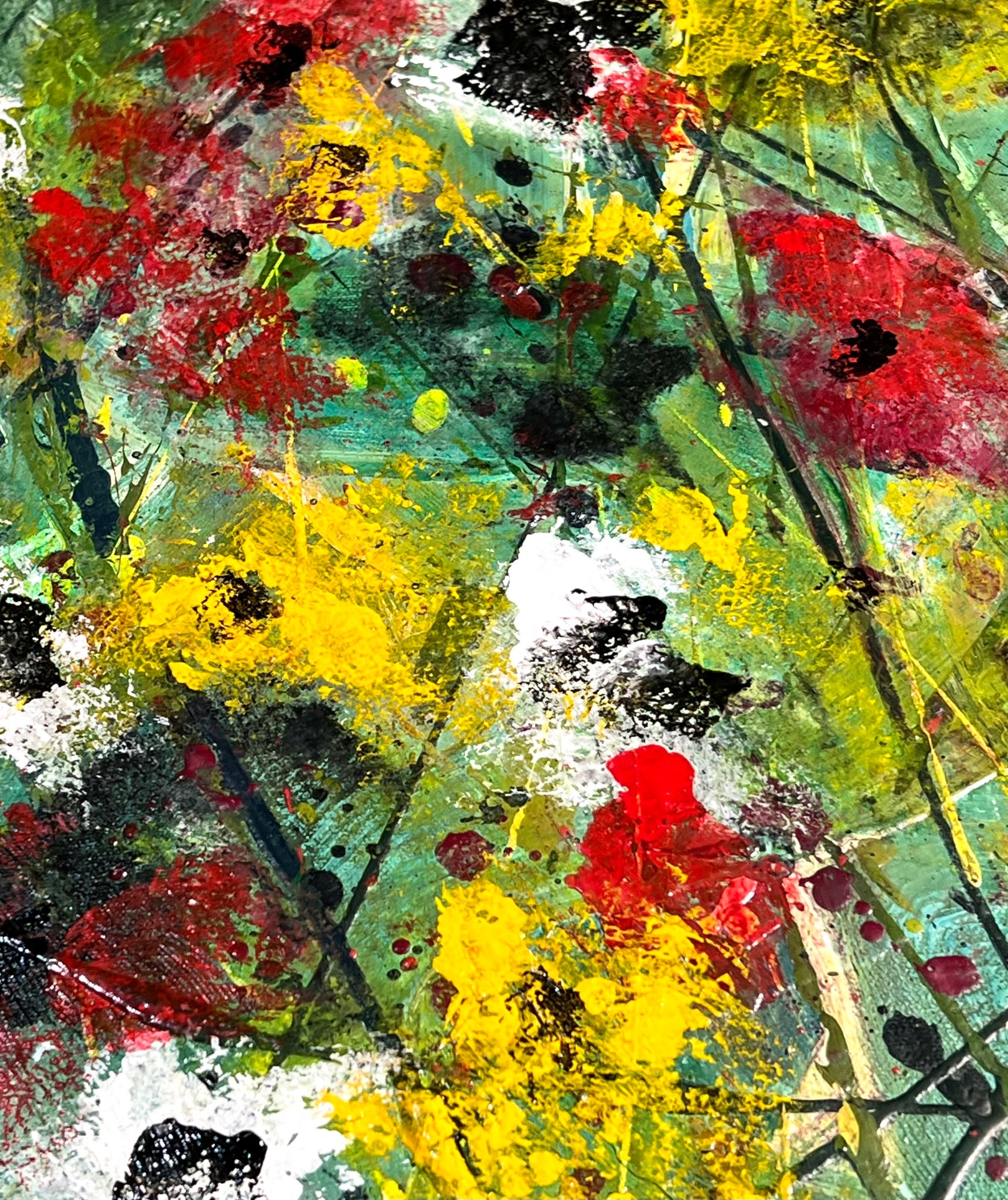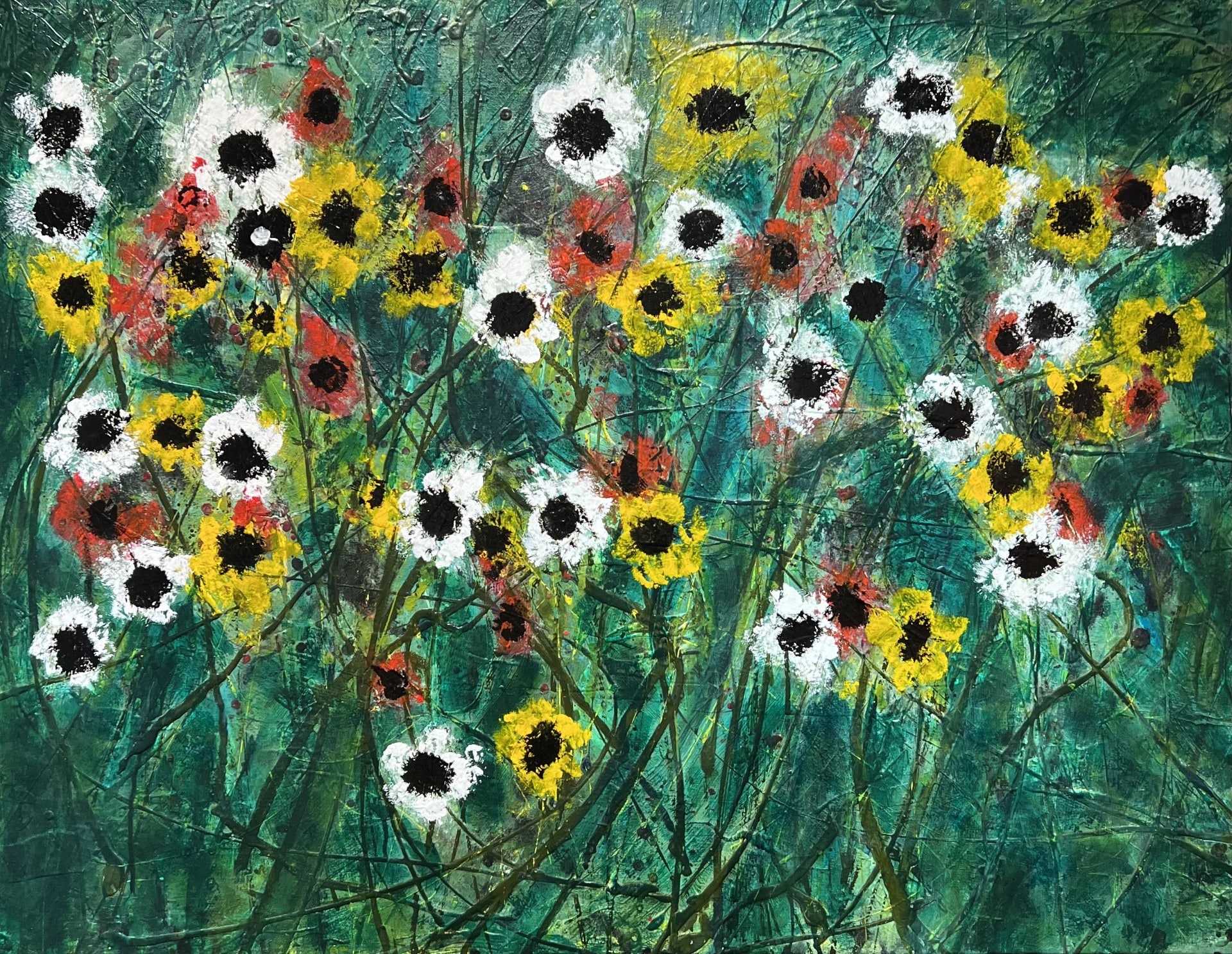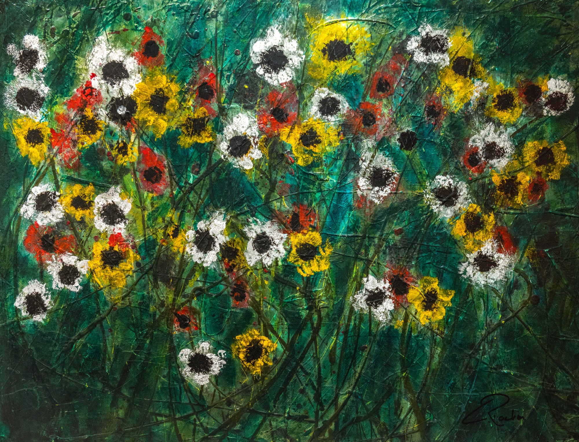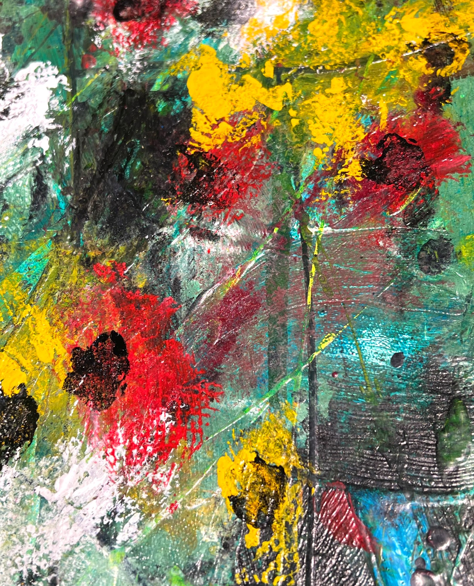 I am very happy with the final painting as it is an honest interpretation of this journey. You will see the transition as you follow the images. Although some of the earlier layers were brighter and more cheerful, the latter less vibrant, yet hopeful.