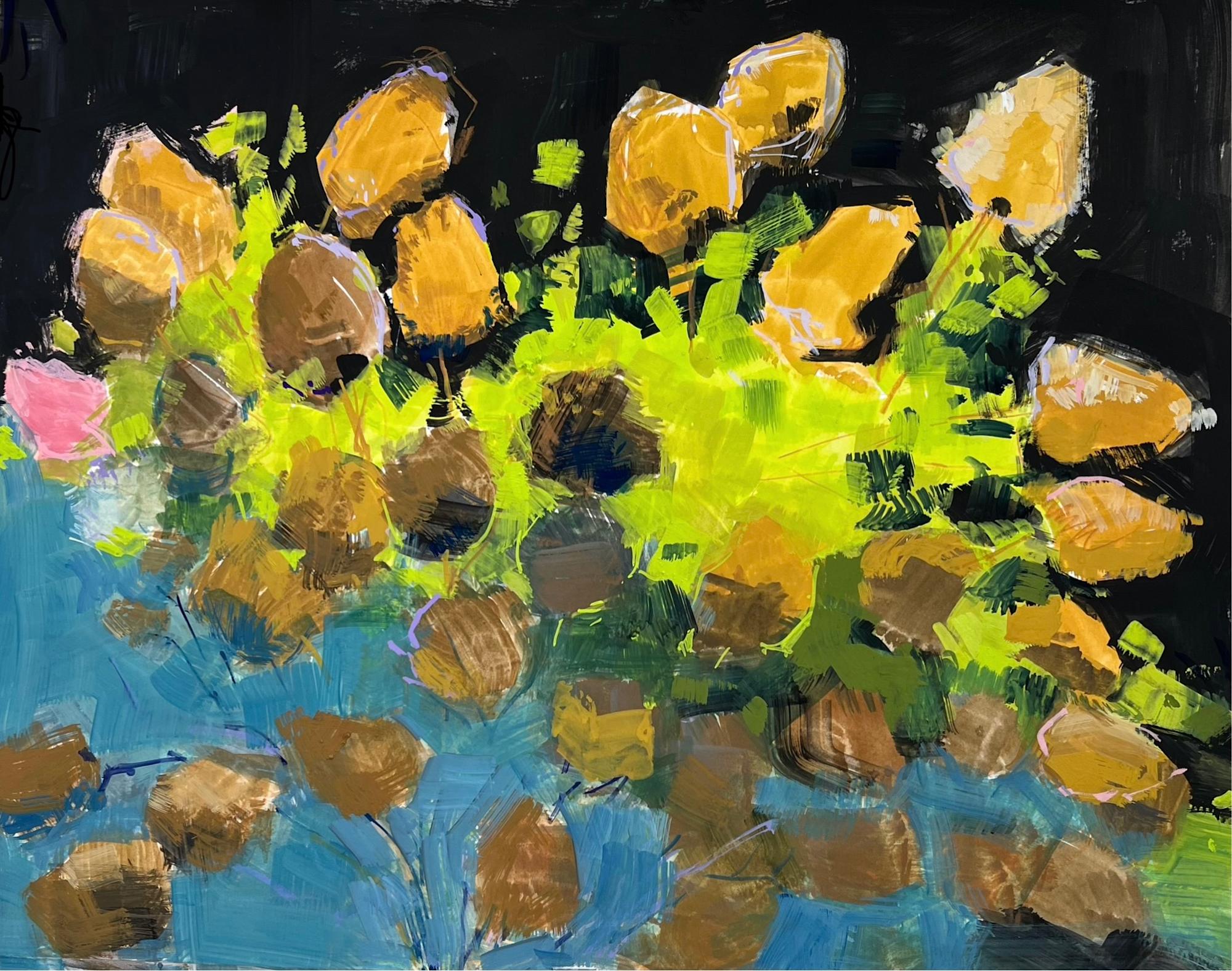 The mixed media are: gouache, watercolor pencil, and black gesso