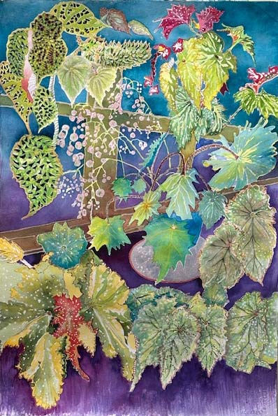 Windowed room filled with begonias.