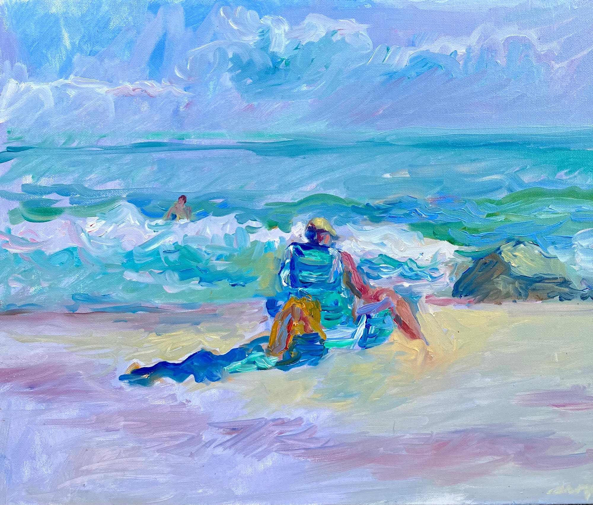It was a beautiful day in Rehoboth and the clouds hovered over the ocean mimicking the waves below. Someone was sitting and looking out at the ocean. I loved the peacefulness I felt there.